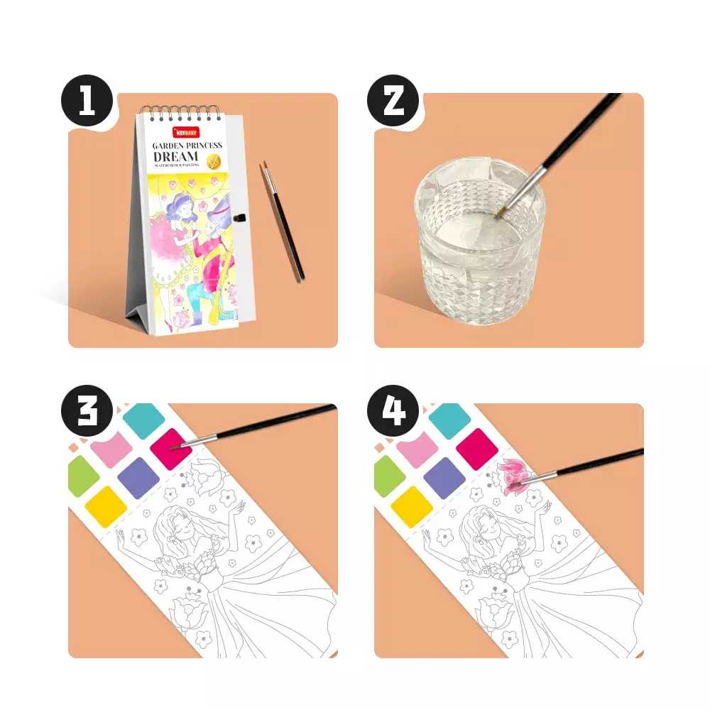Каждый лист раскраски выполнен на цветной бумаге и содержит пигменты, которые активируются водой. В наборе есть кисточка и дополнительные пигментные страницы, чтобы краски всегда были под рукой. Просто смочите кисть и начните творить! Ребенок может без лишних хлопот оторвать рисунок по пунктирной линии и использовать его как поделку или декор. Набор идеально подходит для развития творческих навыков малышей, не пачкая их руки и одежду.