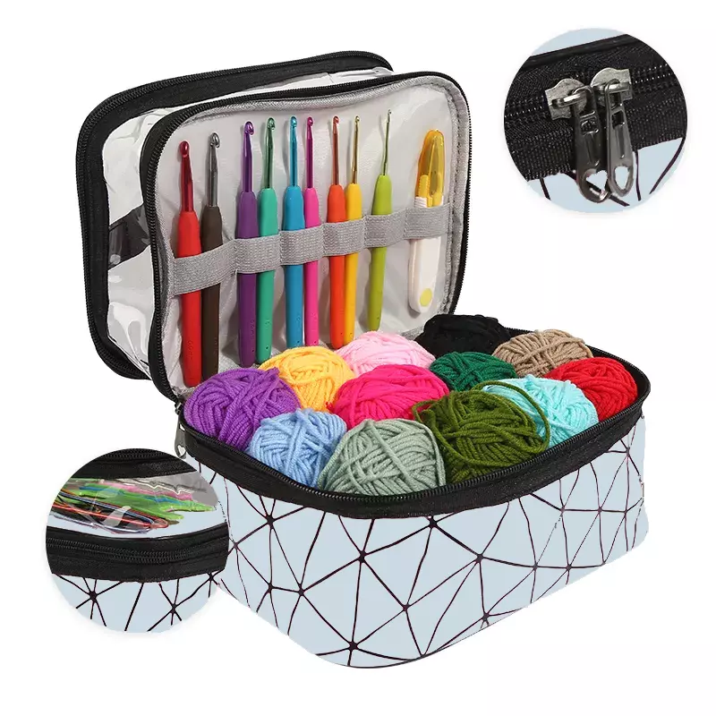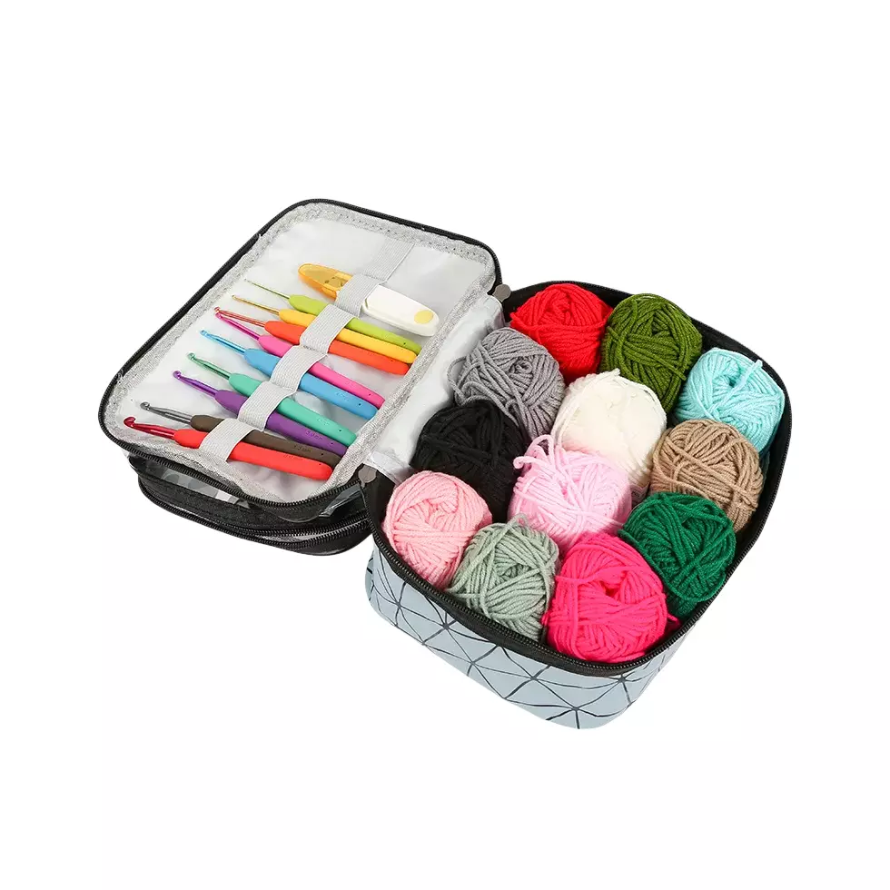 Набор для вязания крючком с пряжей и аксессуарами в косметичке, серый цвет