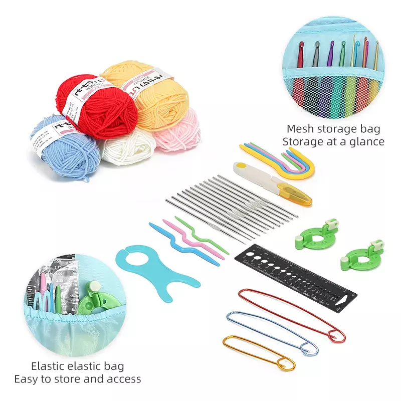 Набор для вязания крючком в косметичке, голубого цвета