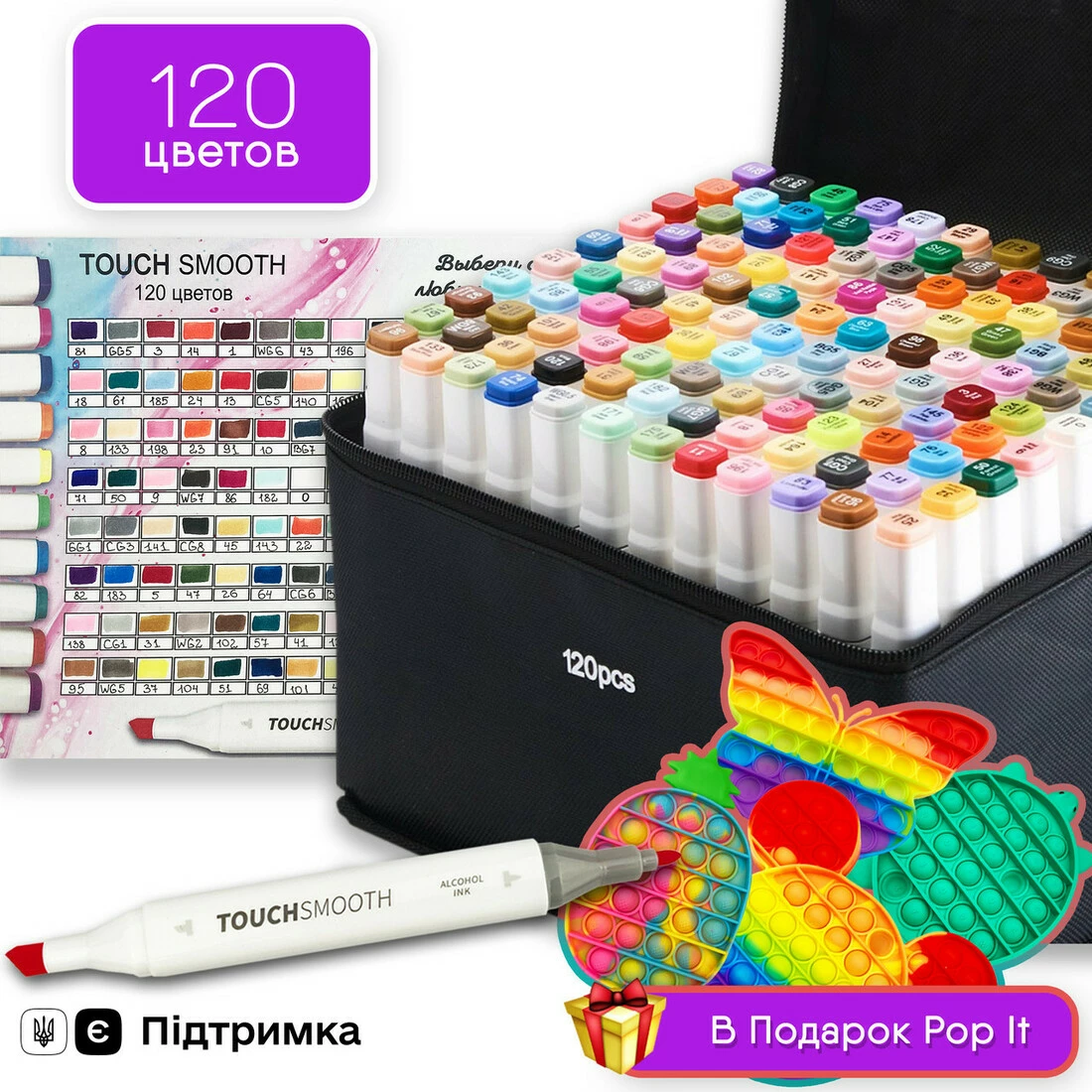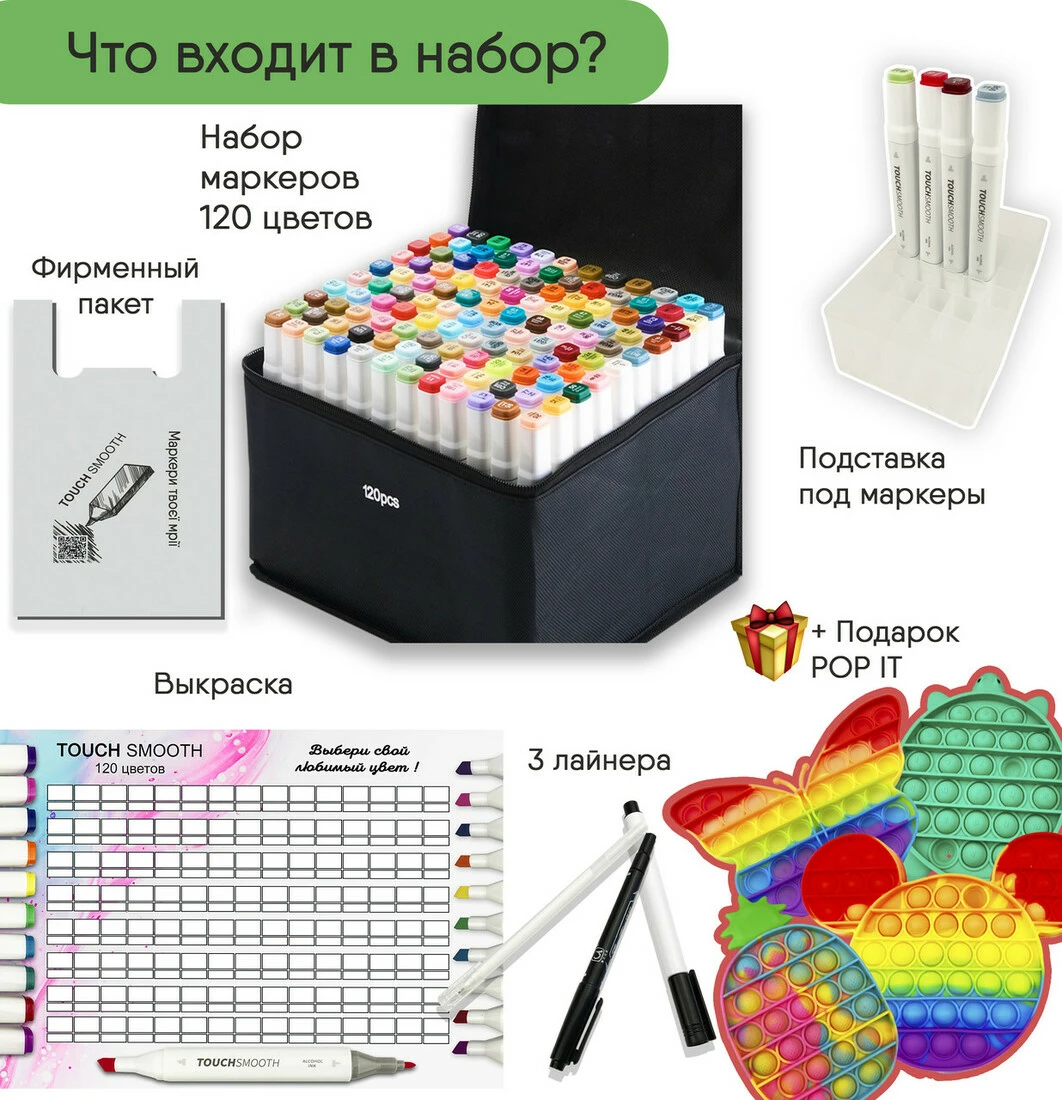 Набор двусторонних маркеров Touch Smooth для рисования и скетчинга 120 шт + ПОП ИТ
