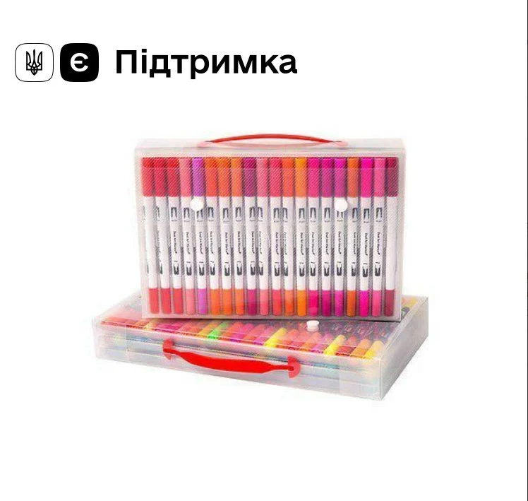 состоит из 100 цветов. Маркеры имеют два наконечника (лайнер и