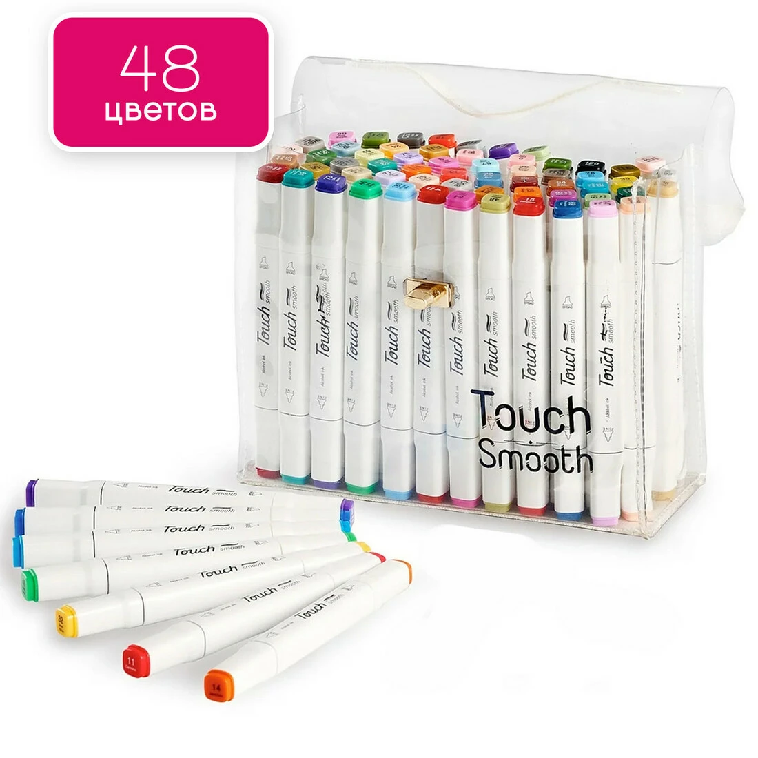 Набор двусторонних спиртовых маркеров для рисования Touch Smooth 48 штук, набор маркеров для скетчинга