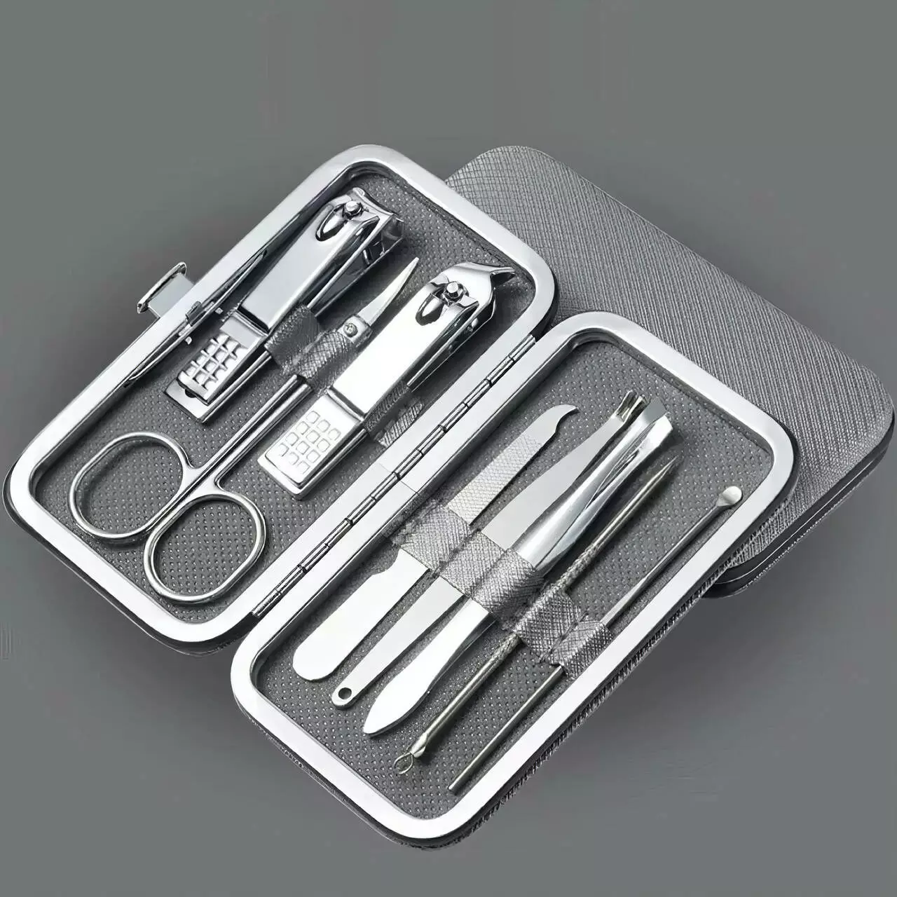 Набор инструментов для маникюра и педикюра в кейсе,пинцет,пилочка,ножницы в наборе 8 шт, цвет серый