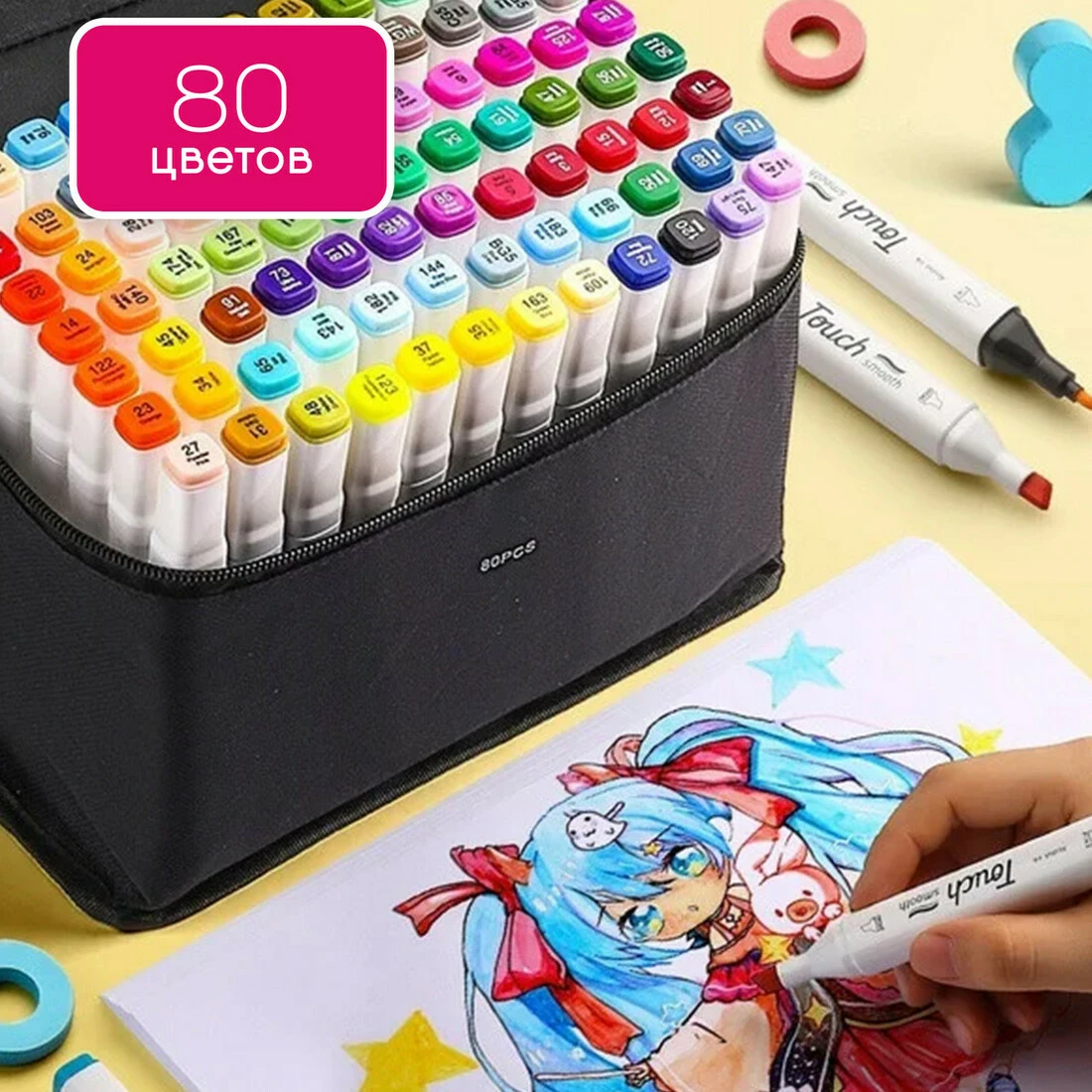 Набор качественных двусторонних маркеров 80 штук Touch Smooth для скетчинга на спиртовой основе, Видеообзор!