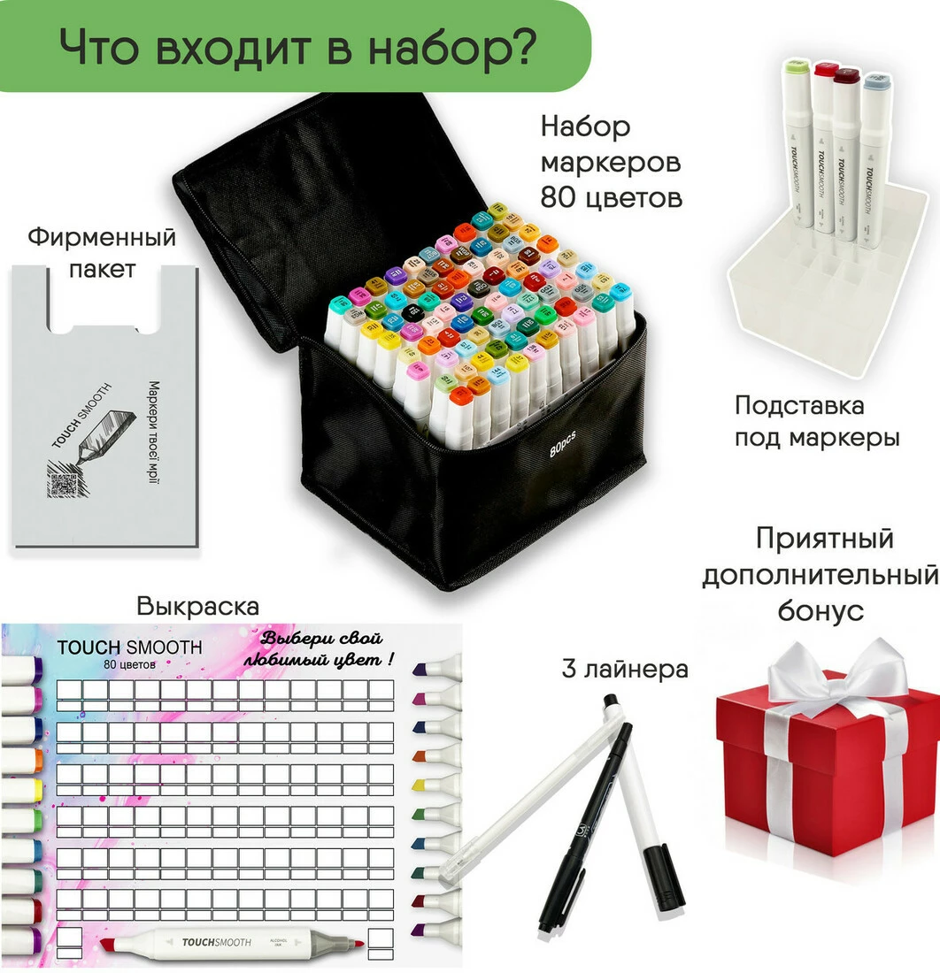 Набор качественных маркеров для скетчинга Touch Smooth 80 штук в