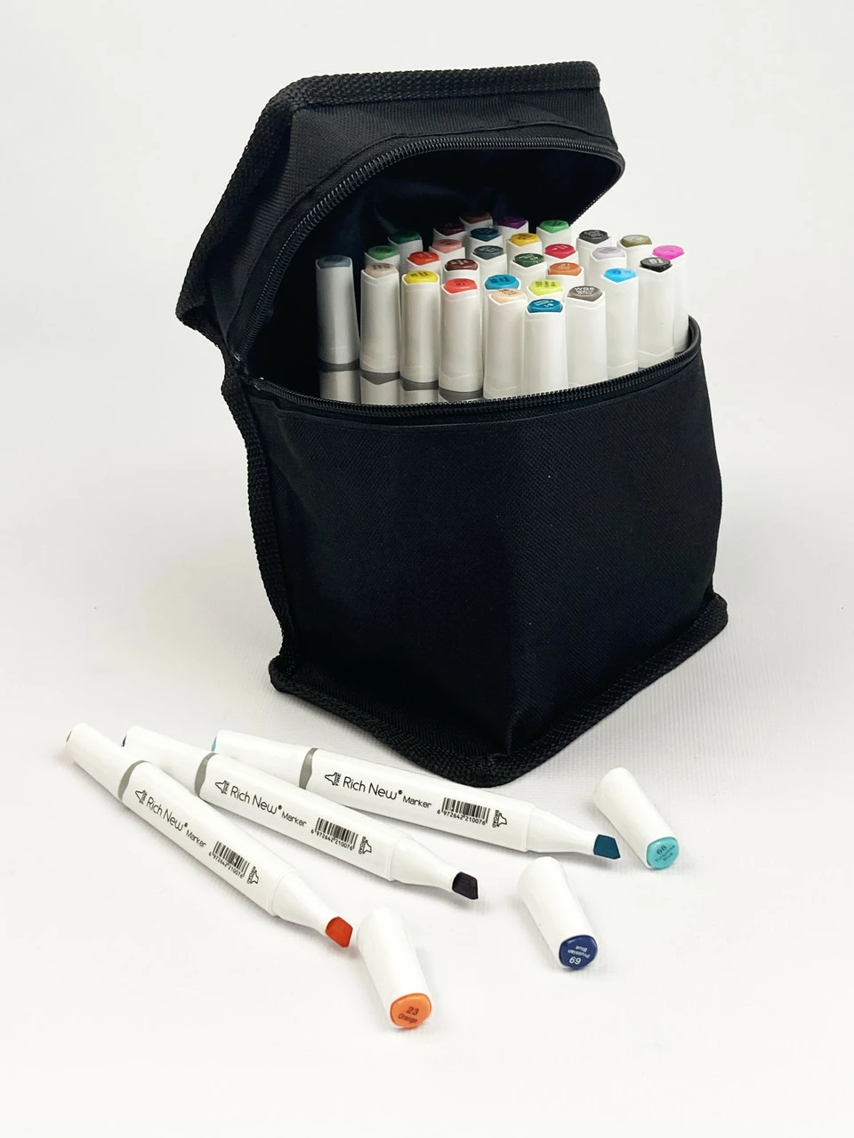 Набор качественных спиртовых маркеров Rich New для рисования и скетчинга 36 цвета, маркеры в чёрной сумке