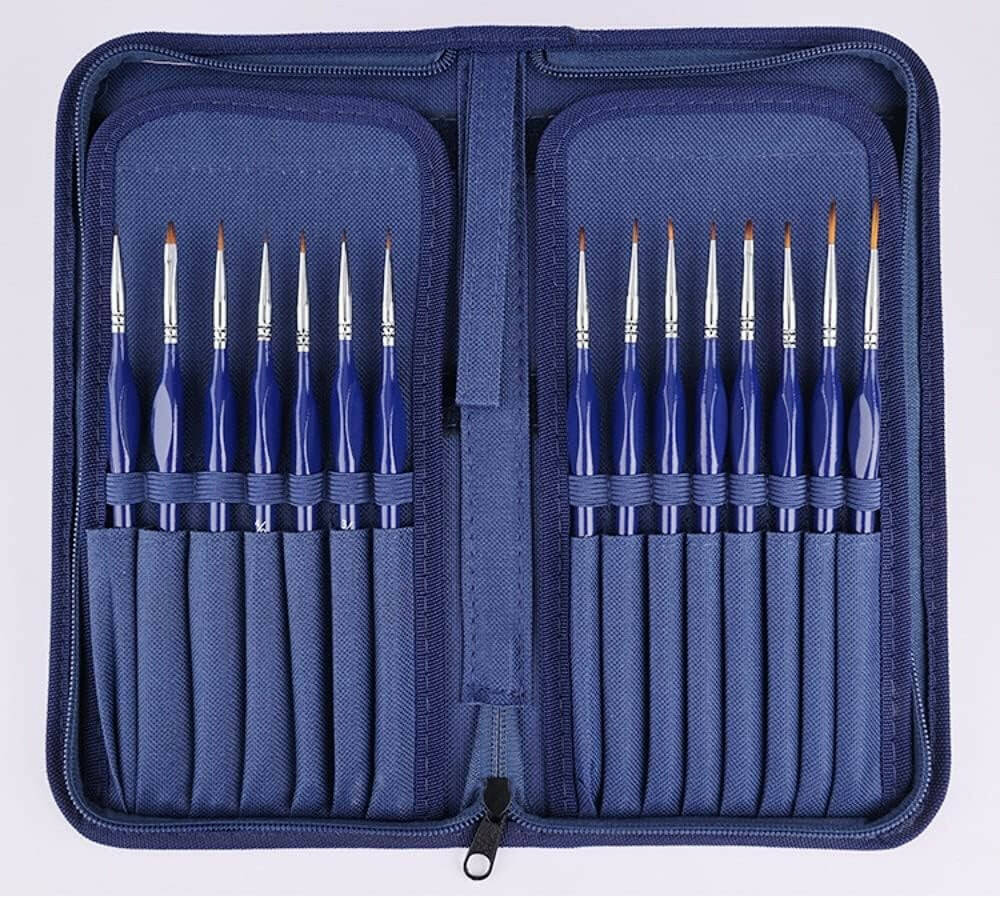 Набор кистей нейлоновых в чехле на молнии для акварели, акрила, гуаши, масла и нейл-арта, 15 шт синие