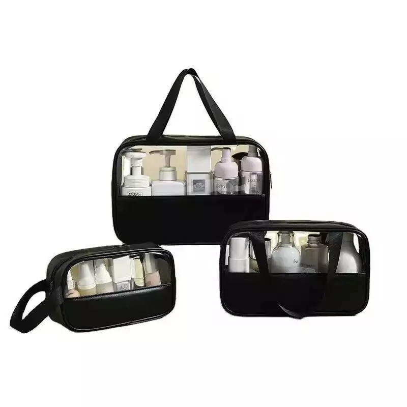 Набор косметичек женских 3 шт, для душа, черные, прозрачные