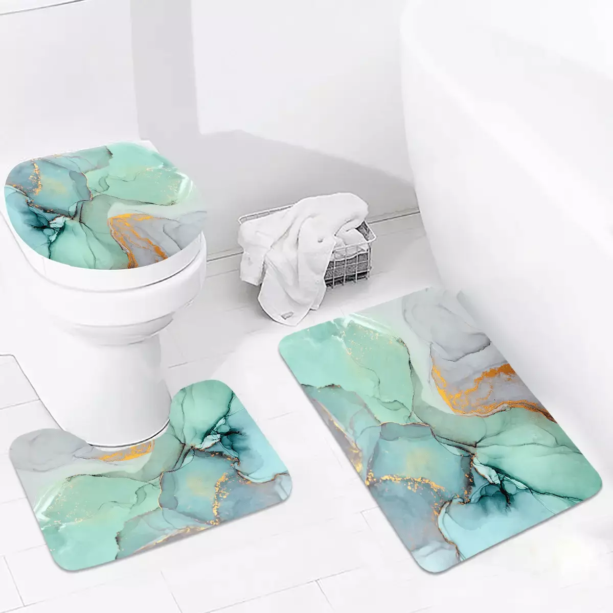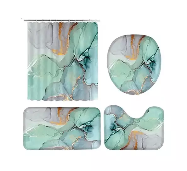 Набор ковриков и шторки для ванной комнаты и душа, комплект шторки и коврики в ванную, бирюзовый цвет
