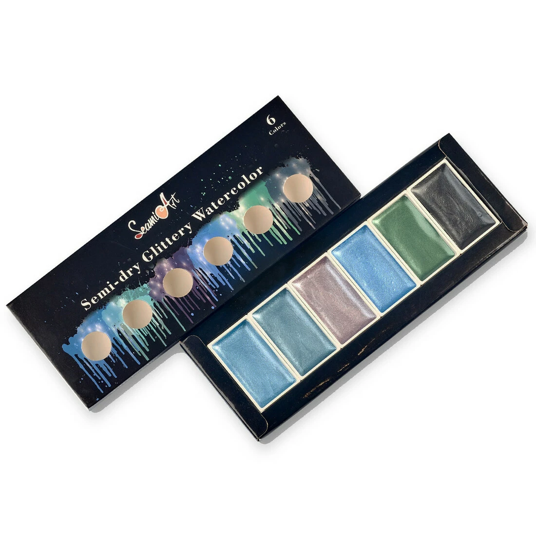 Набор красок для рисования Seami Art Краски акварельные с перламутром Синие оттенки