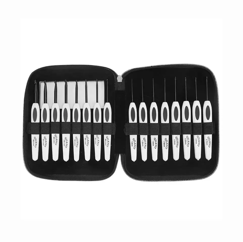 Набор крючков для вязания в косметичке, 16 штук белых крючков, размер 1.0/10.0 мм