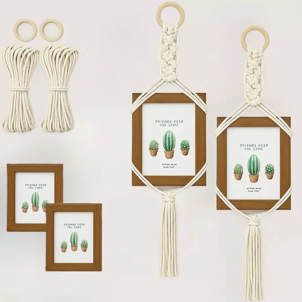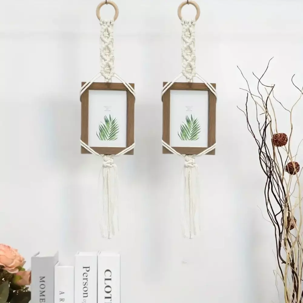 Набор макраме для ручного вязания 2 шт настеных подвязок с рамками для фото и картин размер 11х15 см,белый