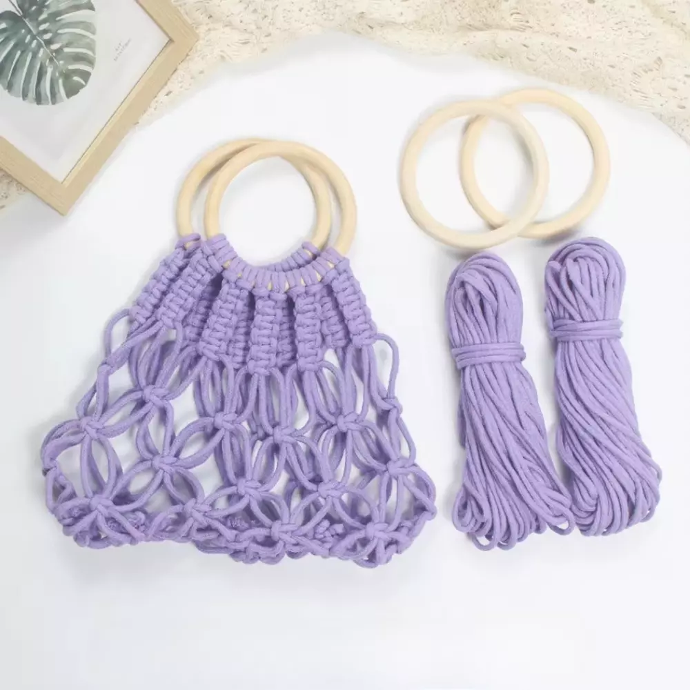Набор макраме для ручного вязания ажурной плетёной сумки 29х26 см для рукоделия и творчества цвет фиолетовый