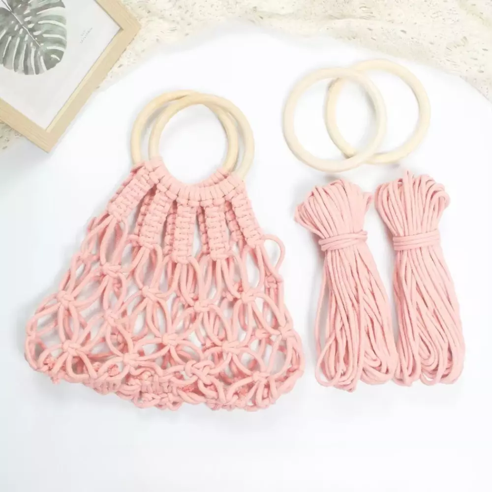 Набор макраме для ручного вязания ажурной плетёной сумки 29х26 см для рукоделия и творчества цвет розовый