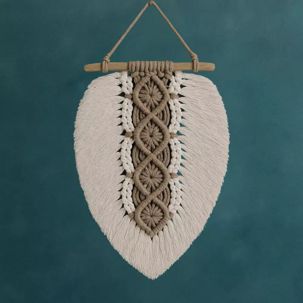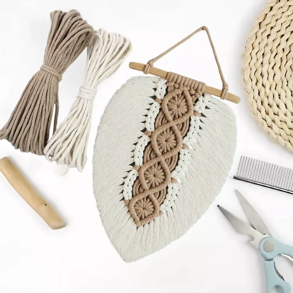 Набор макраме для ручного вязания гобелена настенного декора "Лист" 26х15см для рукоделия и творчества бежевый