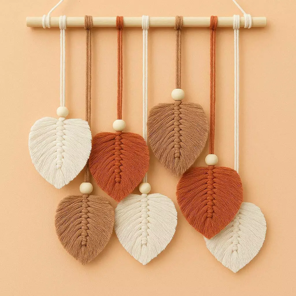 набором макраме! Готовое изделие — гобелен "Листья", выполненный в
