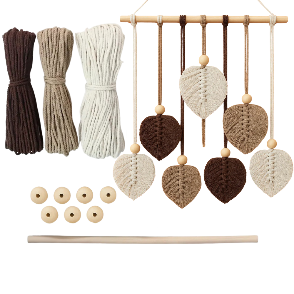 Набор макраме для ручного вязания гобелена настенного декора "Листья" 37х30см,для рукоделия коричнево-бежевый