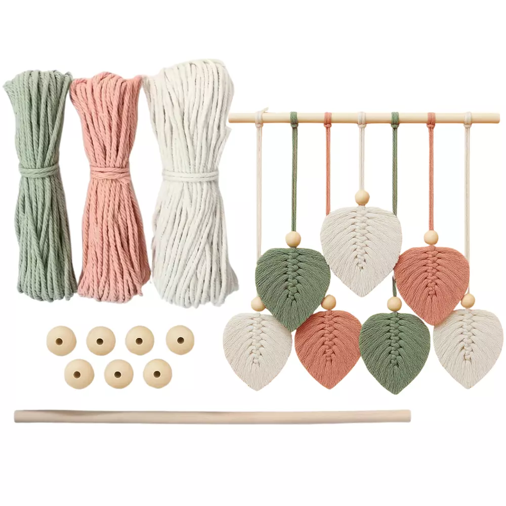 Набор макраме для ручного вязания гобелена настенного декора "Листья" 37х30см,для рукоделия розово-зелёный