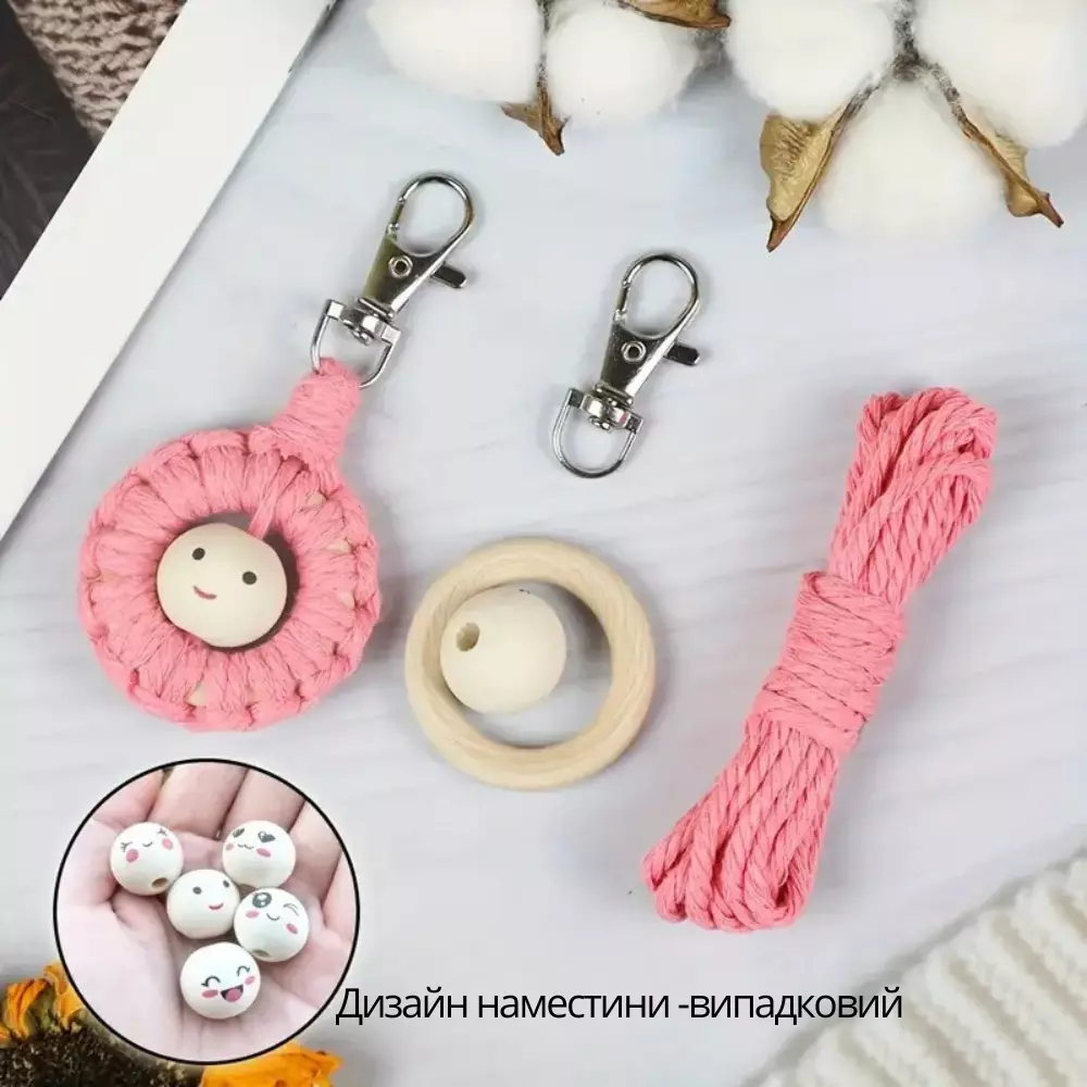 Набор макраме для рукоделия для ручной пряжи брелока для ключей или аксессуаров 10х5см,розовый
