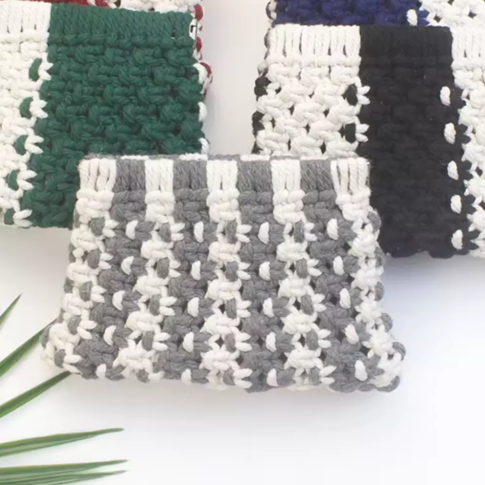 Набор макраме для рукоделия, для творчества вязания своими руками кошелька 15.7х10см цвет серый с белым