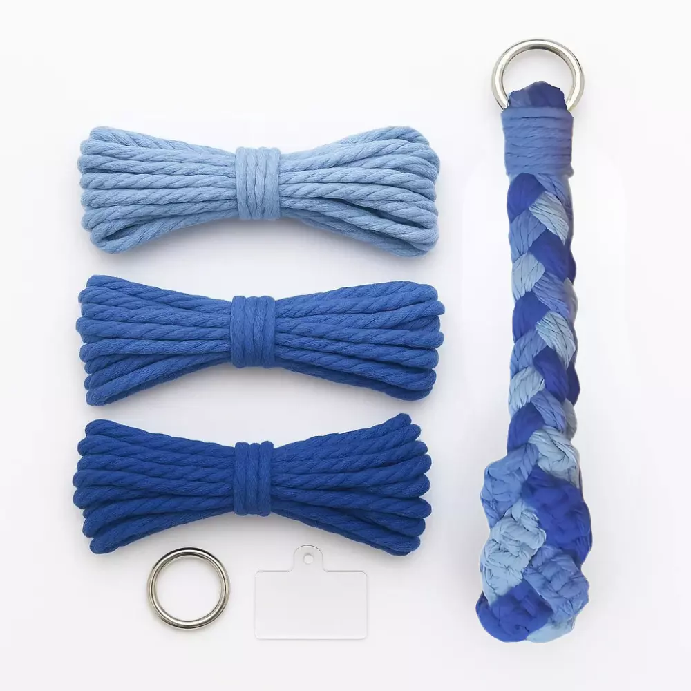Набор макраме для рукоделия и плетения брелока для ключей и аксессуаров 17.3х3.5см трёхцветный синий