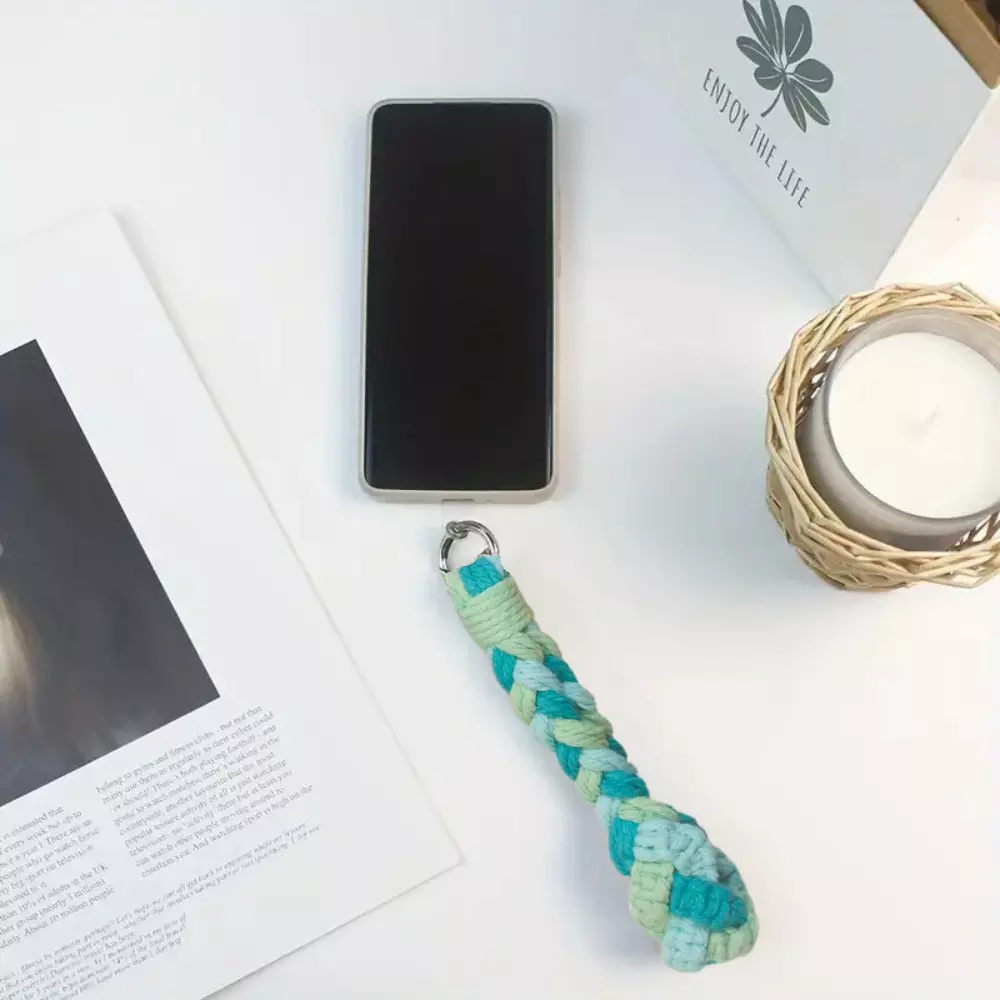 Набор макраме для рукоделия и плетения брелока для ключей и аксессуаров 17.3х3.5см зелёный,голубой,бирюзовый
