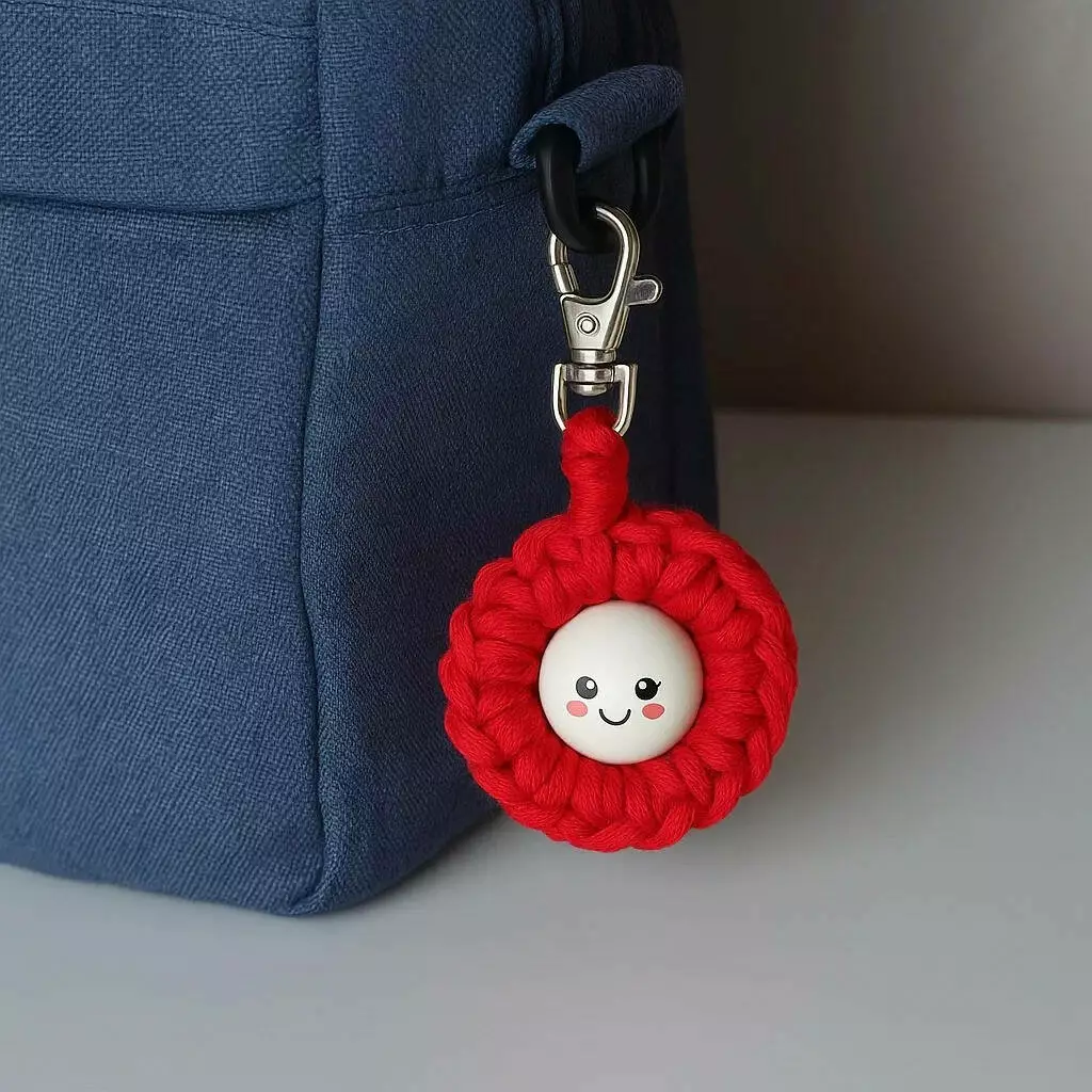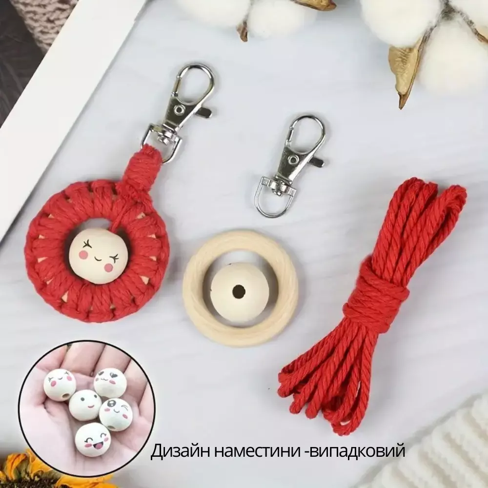 Набор макраме для творчества и ручного вязания брелока для ключей или аксессуаров 10х5см,красный