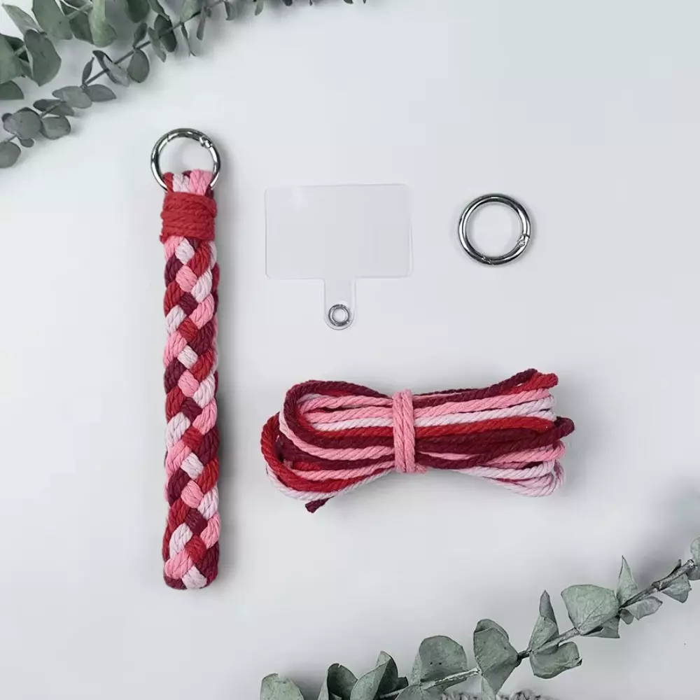 Набор макраме для вязания и плетения брелока "Косичка" для ключей цвет красный, бордовий, белый, розовый