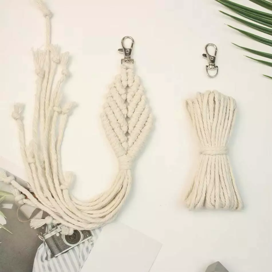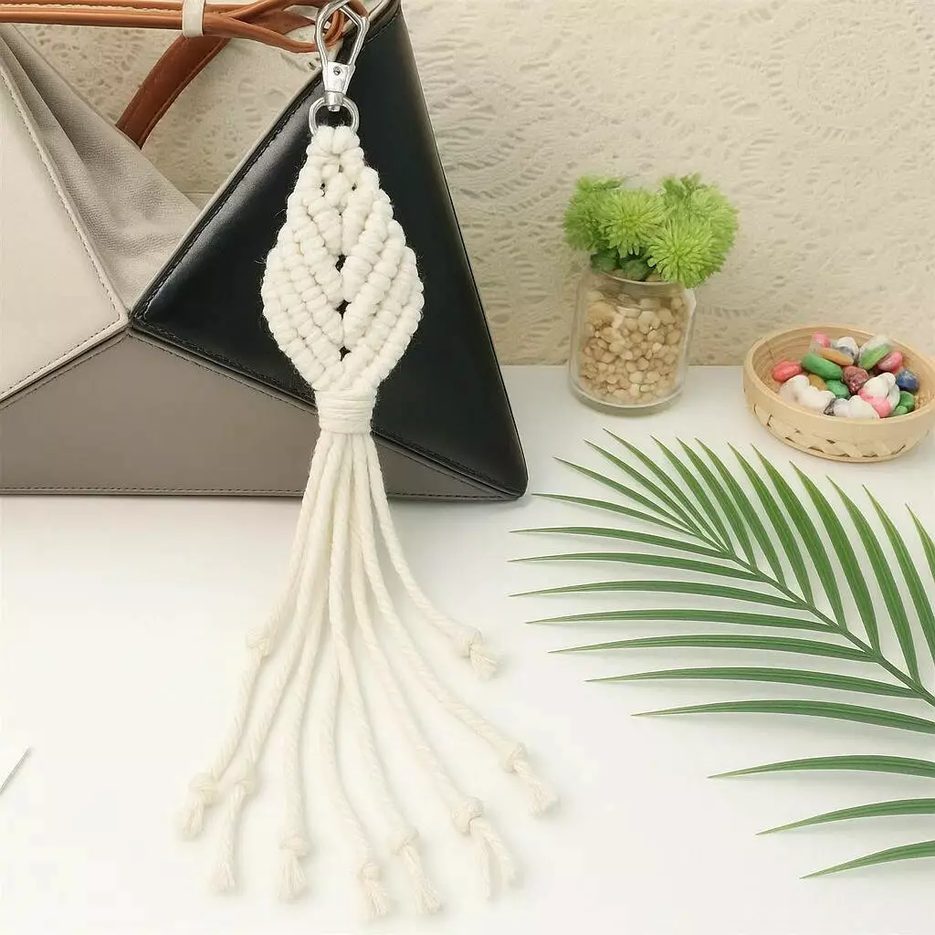 Набор макраме ручного вязания и для рукоделия брелока "Ромб" для ключей, сумки и аксессуаров белый