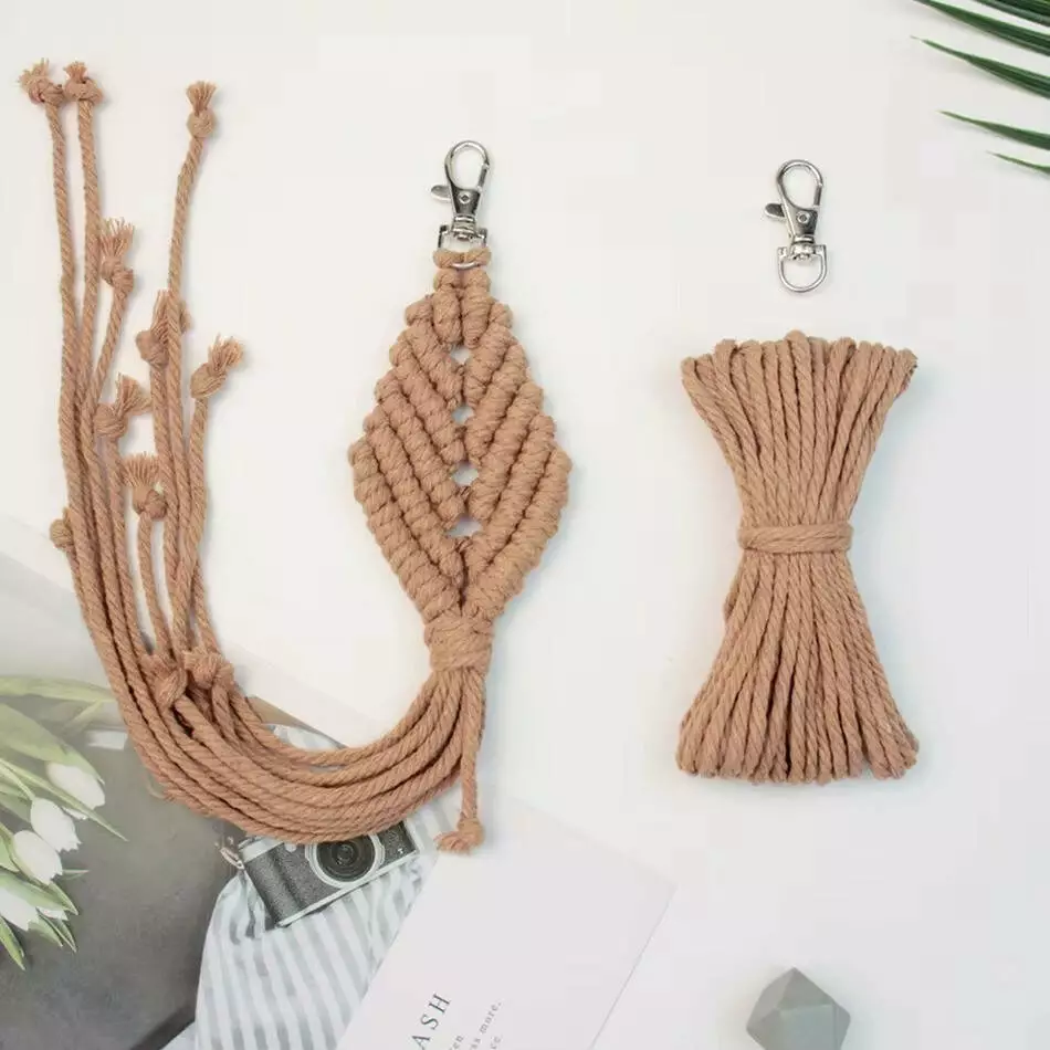 Набор макраме ручного вязания и для рукоделия брелока "Ромб" для ключей, сумки и аксессуаров персиковый