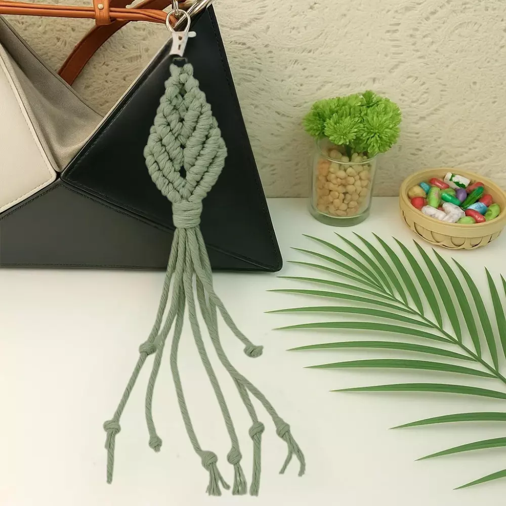Набор макраме ручного вязания и для рукоделия брелока "Ромб" для ключей, сумки и аксессуаров светло-зелёный