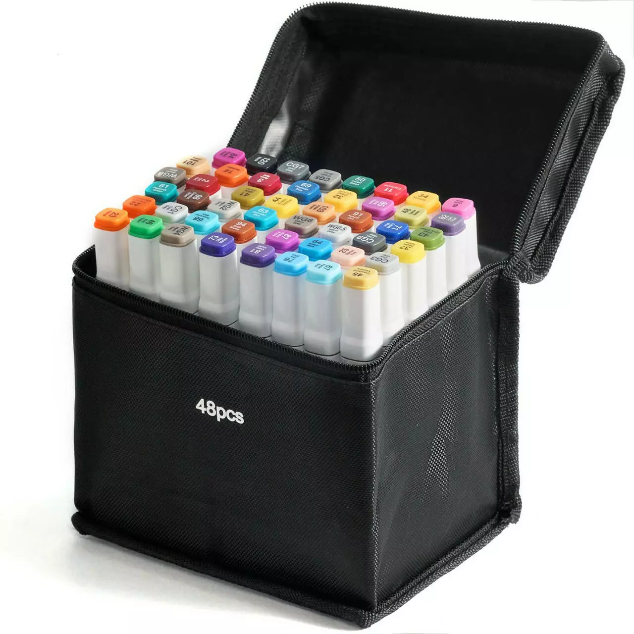 Набор маркеров для художников Touch Smooth 48 шт, двусторонние для рисования+Органайзер для канцелярии черная