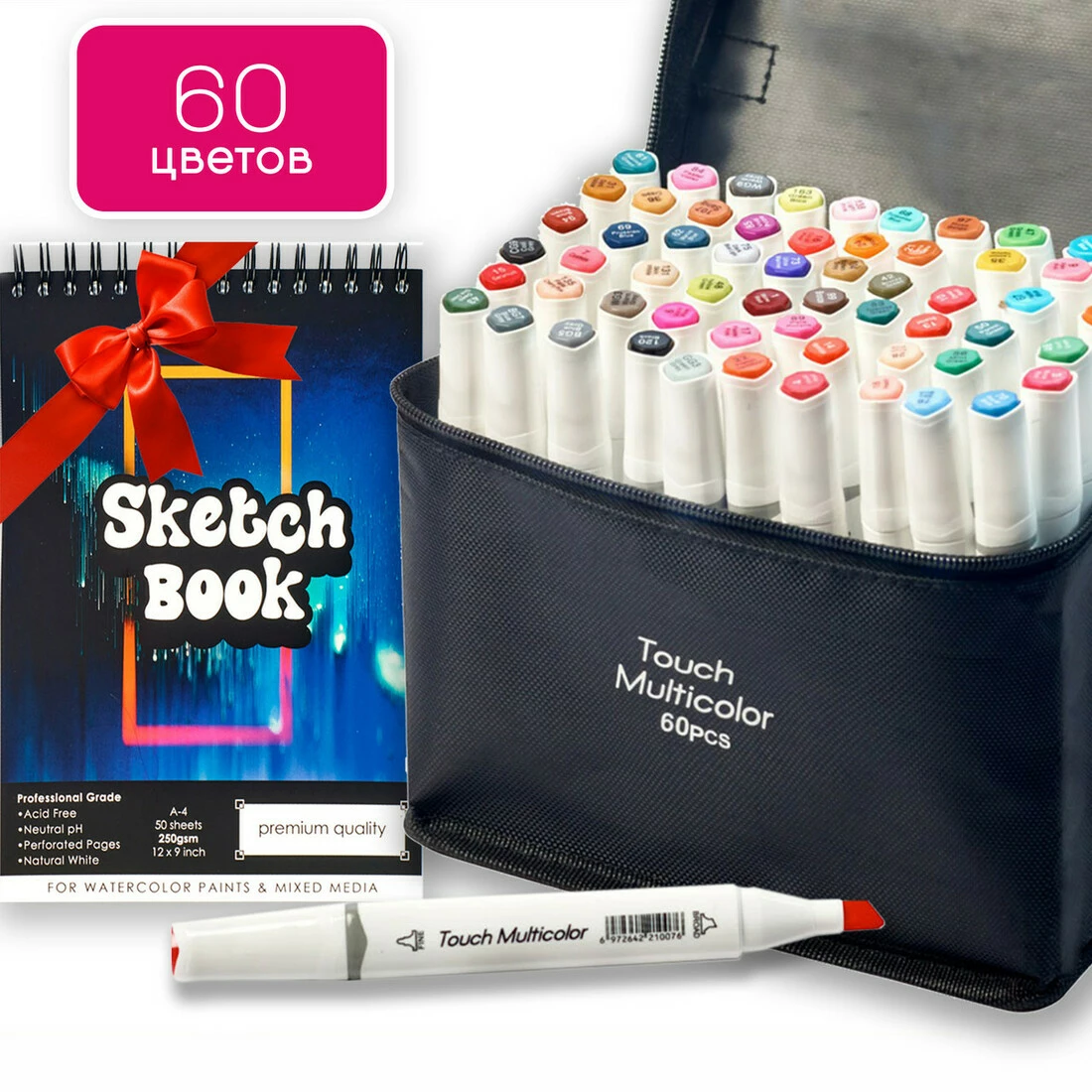 Вы покупаете Набор маркеров двусторонних Touch Multicolor 60 цветов и в подарок получаете Бумагу для скетчинга и рисования в формате А5.
