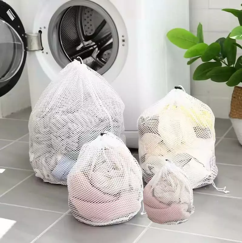 Набор мешков-сеткой для белья со шнурком зятяжкой для стирки в стиральной машине комплект 4 штуки