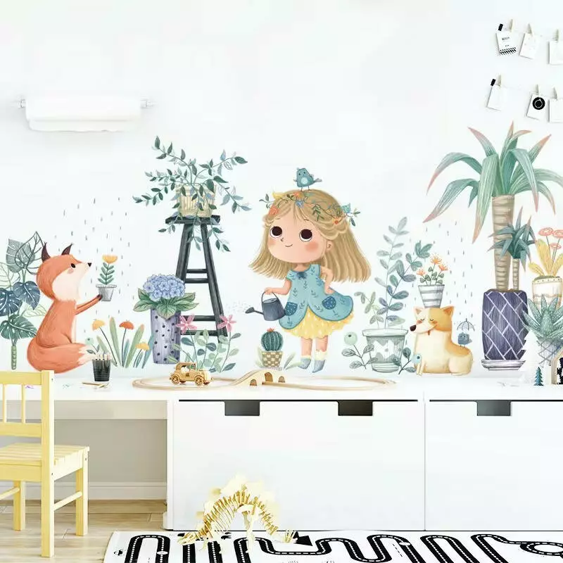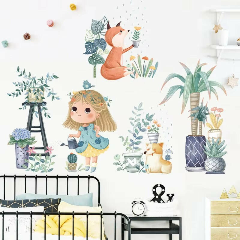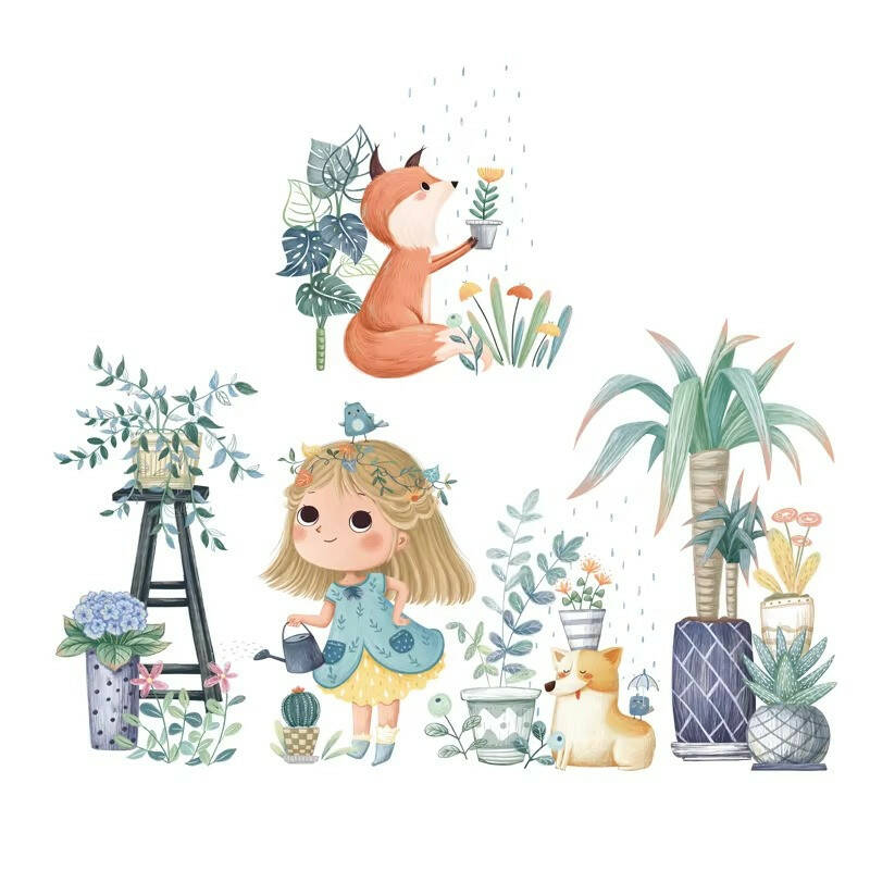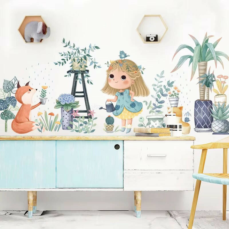 Набор виниловых наклеек "Девочка с лейкой" для детской комнаты