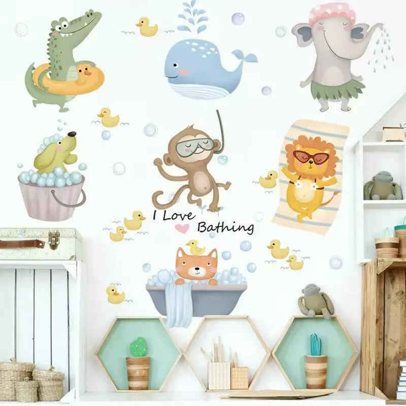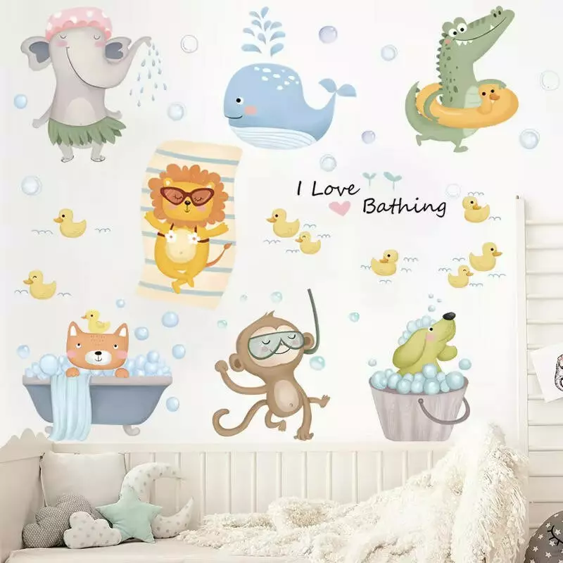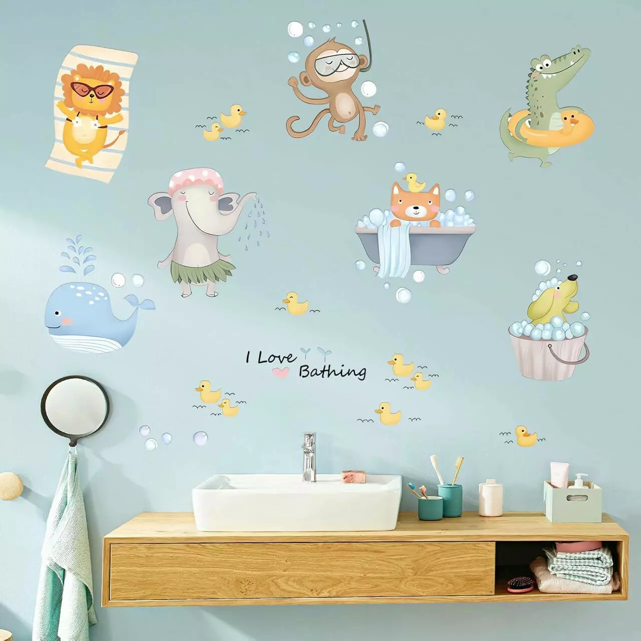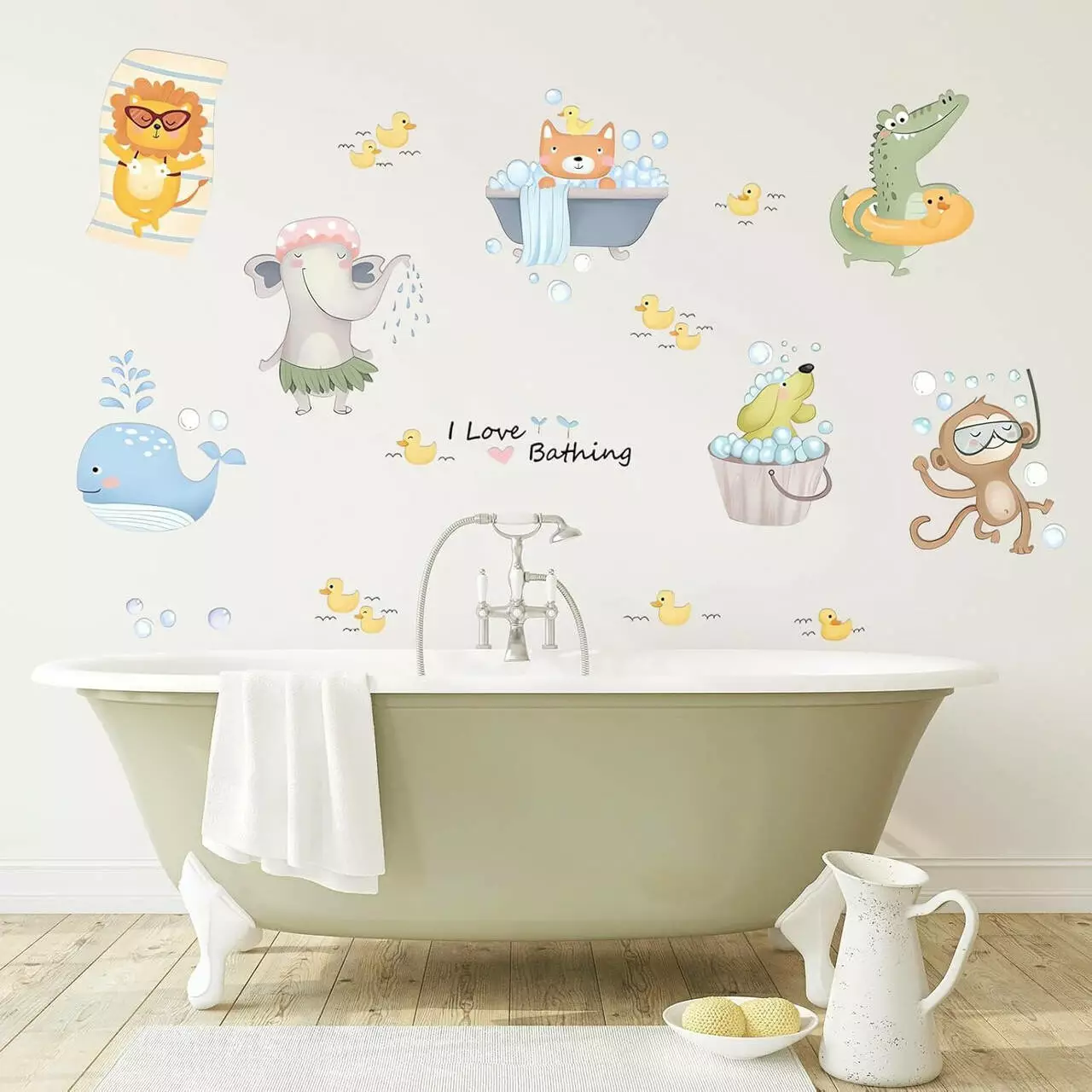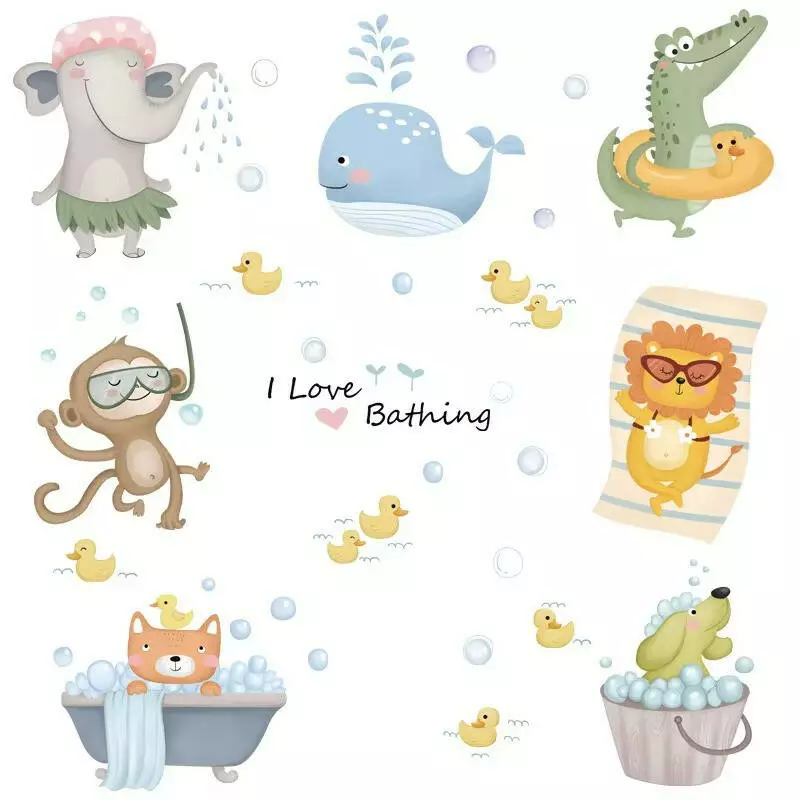 Набор виниловых наклеек "I love bathing" — это идеальное решение для яркого и стильного декора ванной комнаты. Композиция из мультяшных животных, принимающих водные процедуры, добавит веселья в повседневные ритуалы и сделает их интереснее для детей. С такими наклейками любой интерьер заиграет новыми красками, создавая атмосферу уюта и радости.