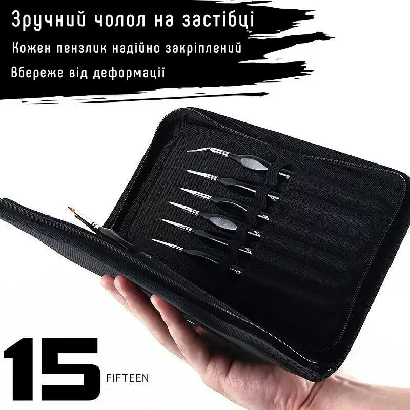 Набор нейлоновых кистей с деревянной ручкой для акварели, акрила, гуаши, масла и нейл-арта, 15 шт