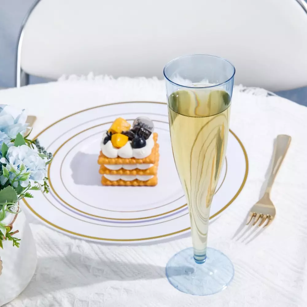 Набор из 6 пластиковых бокалов для шампанского в нежном голубом