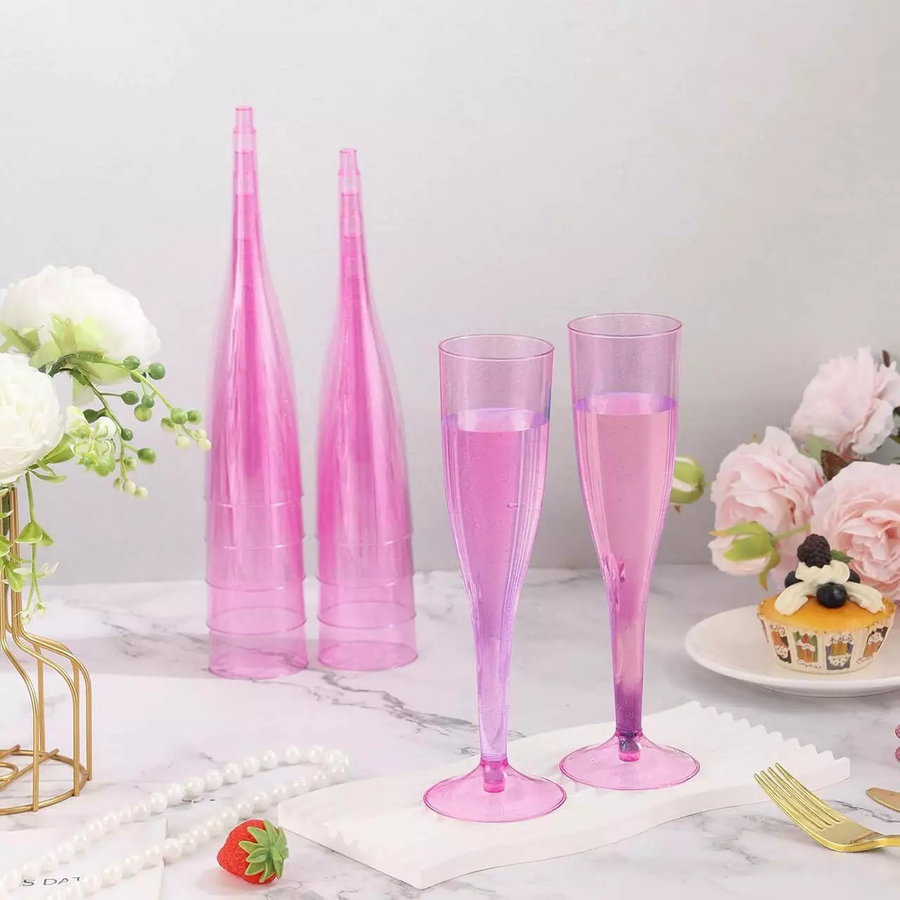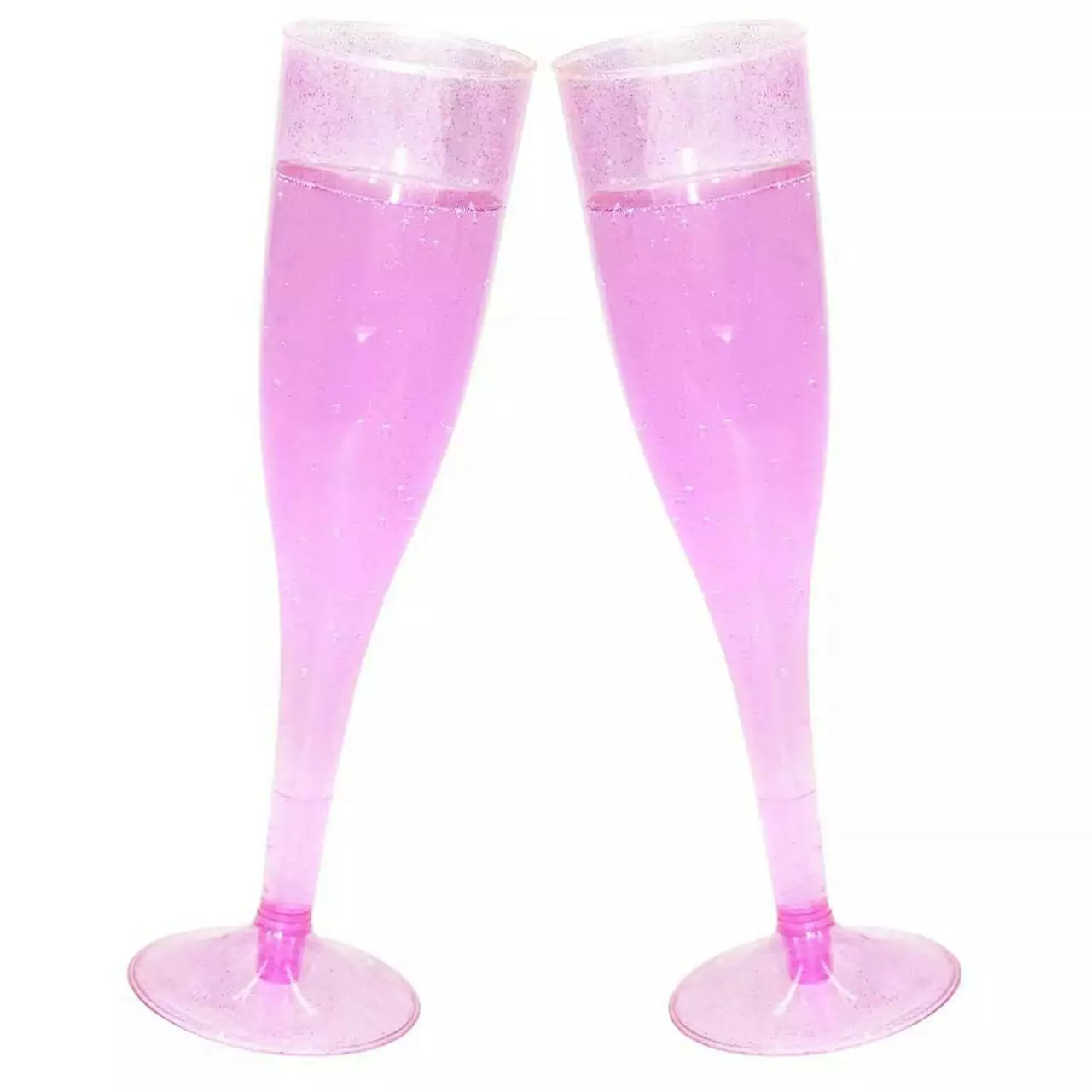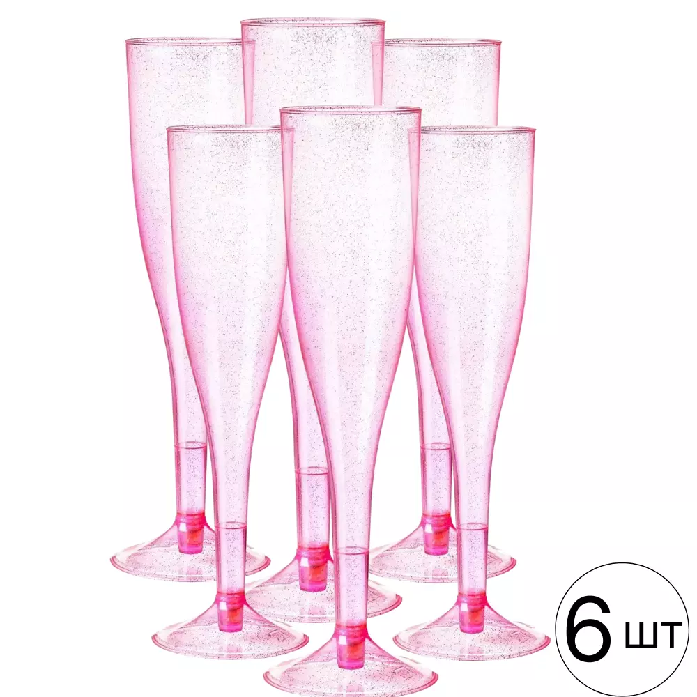 Набор пластиковых бокалов для шампанского 6 шт премиум класса 192 мл,розовые, праздничные с блестками