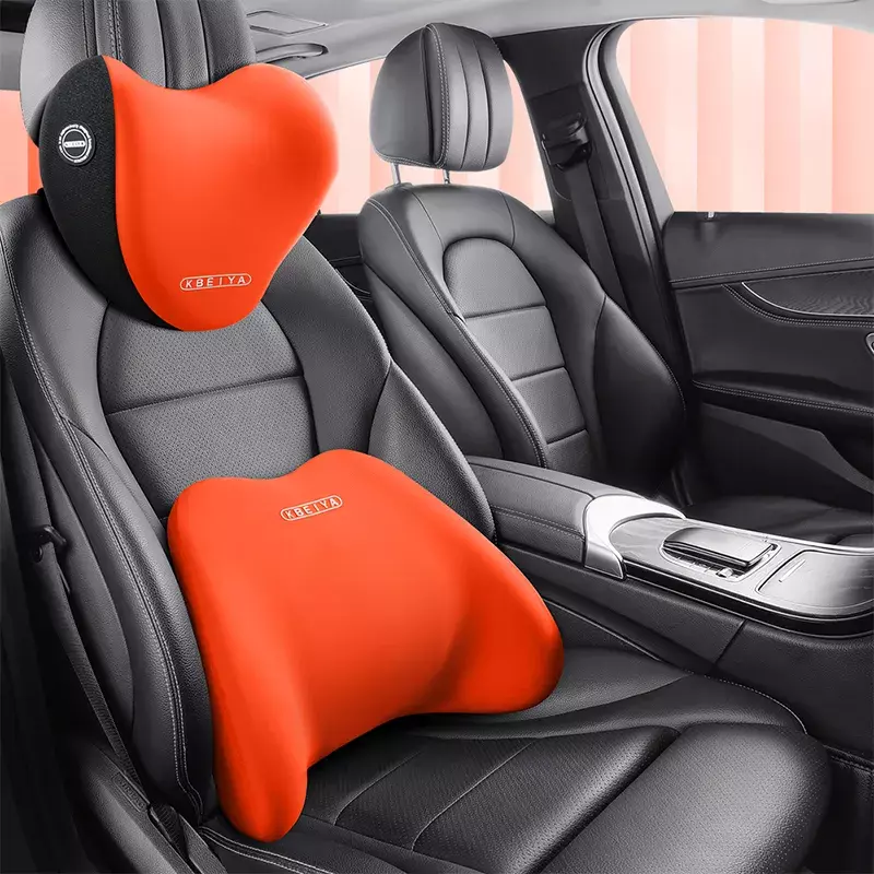 Набор подушек в машину под шею и спину в авто,подушки на подголовник и спинку сиденья,оранжевые