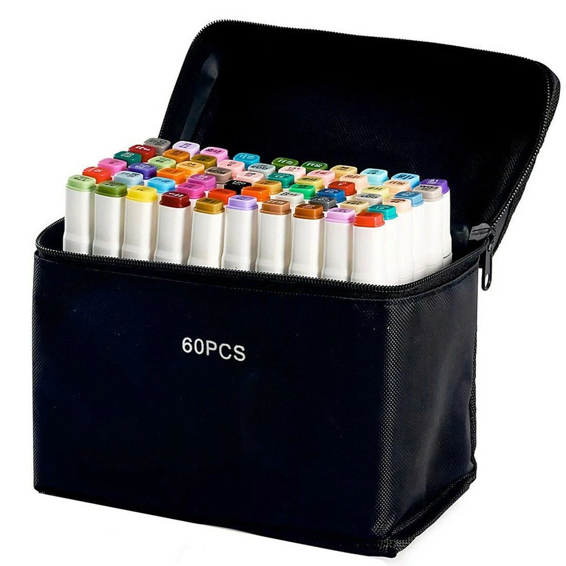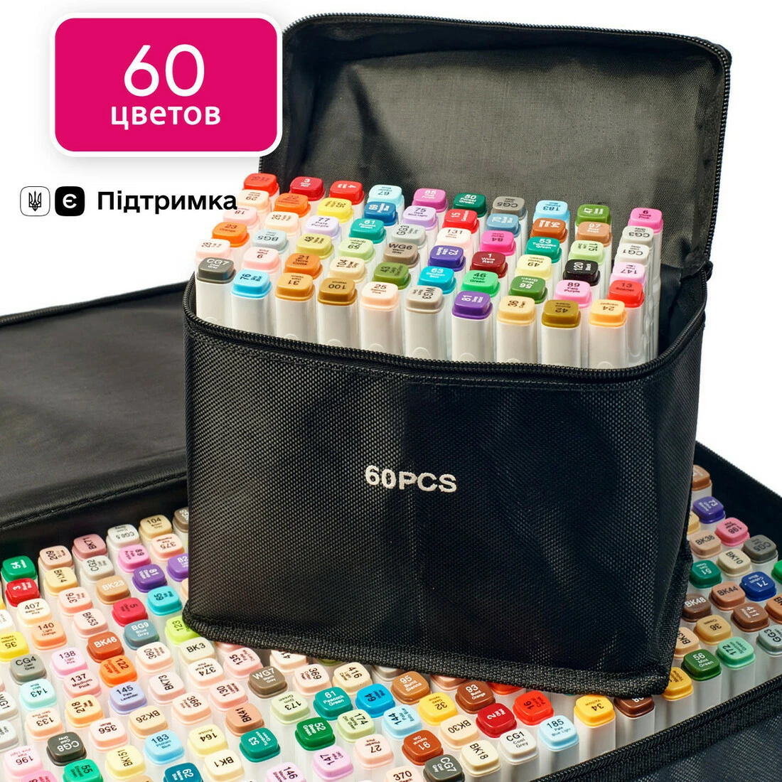 Набор профессиональных двухсторонних маркеров для скетчинга в чехле Touch 60 штук, Фломастеры для художников