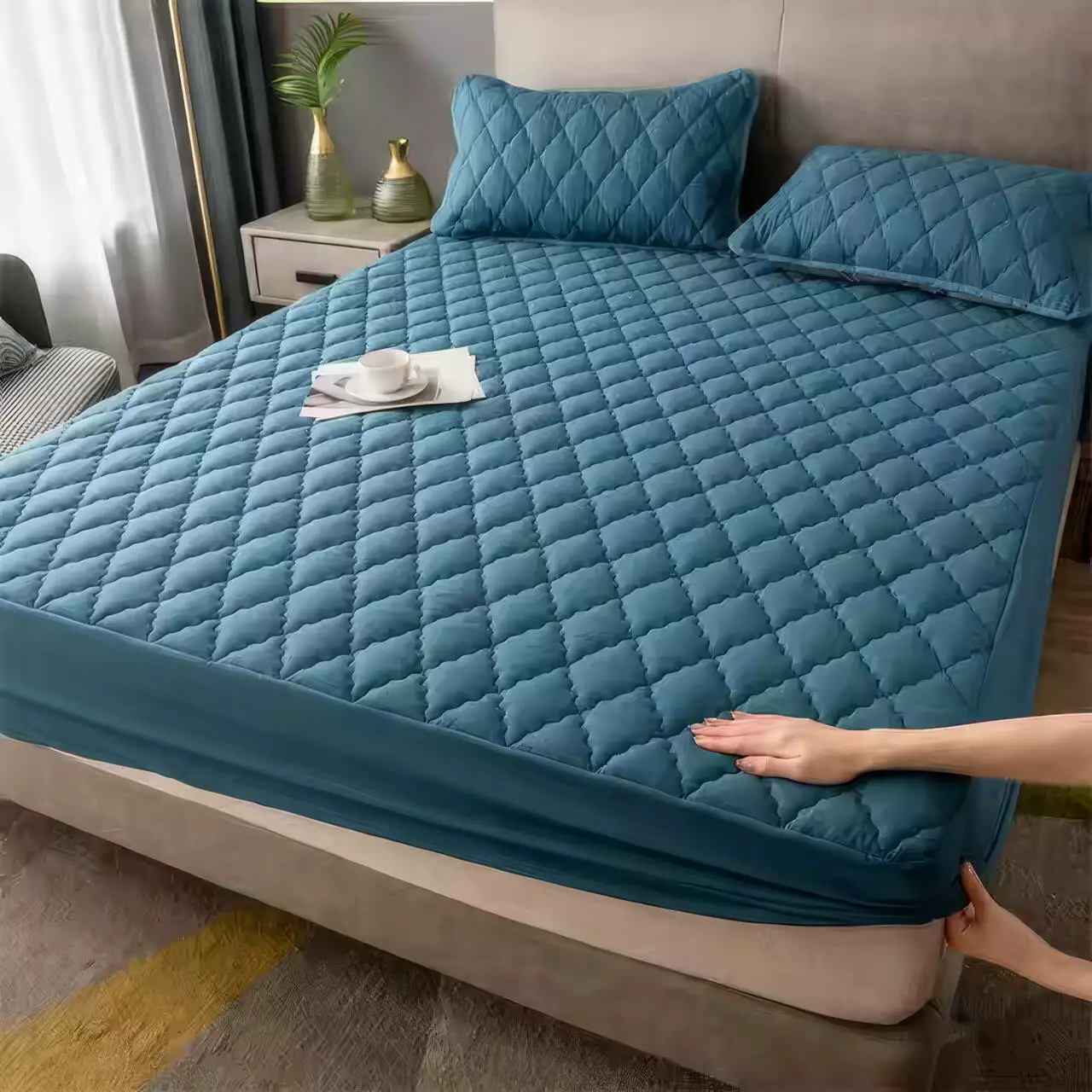 Набор простыня-наматрасник (180×200см) водонепроницаемая на резинке, и 2 наволочки, в синем цвете