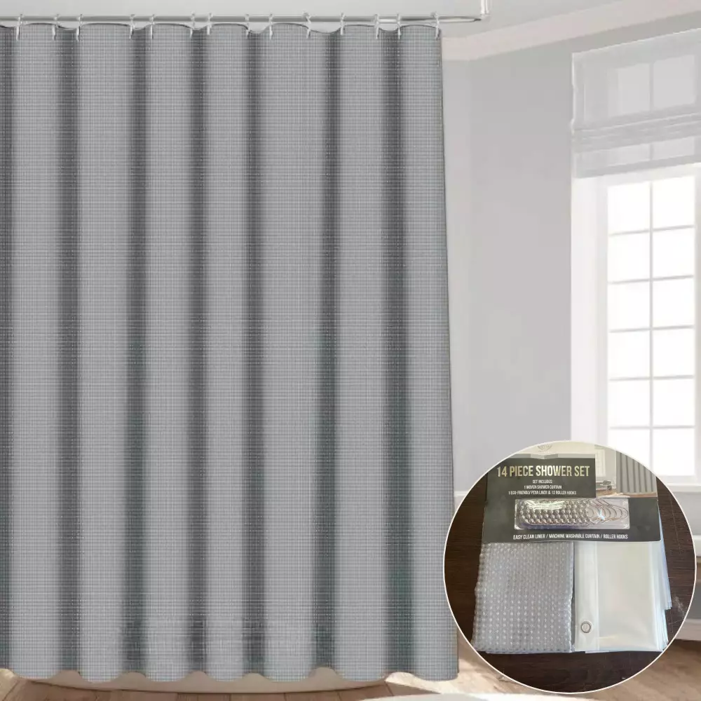 Этот набор включает в себя шторку для ванной и душа с подкладкой, которые идеально подойдут для вашего интерьера. Шторка выполнена из высококачественного 100% полиэстера серого цвета с жаккардовым узором. Она обладает водоотталкивающими свойствами и имеет плотность 130 г/м². Размер шторки составляет 178 x 183 см, что идеально подходит для стандартных ванных комнат. В комплект также входят 12 роликовых крючков, что позволяет легко и быстро подвесить шторку.
