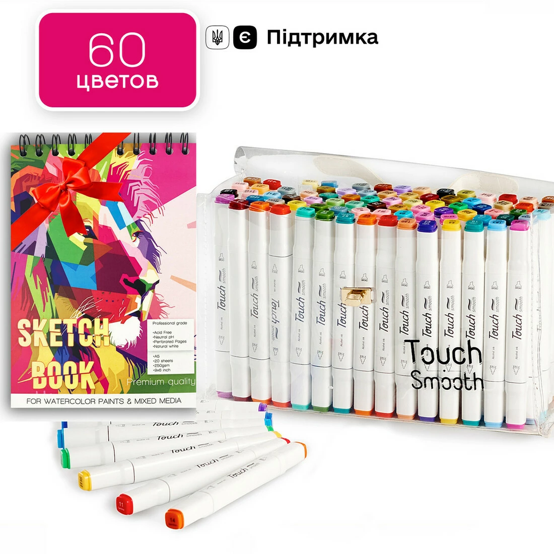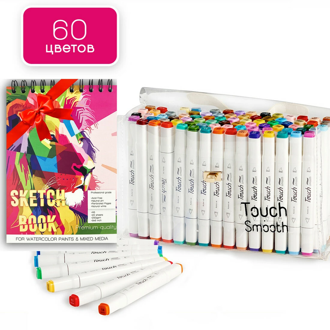 Набор маркеров двусторонних Touch Smooth 60 цветов и Бумагу для скетчинга и рисования в формате А5 - универсальный подарок для любителей рисования!