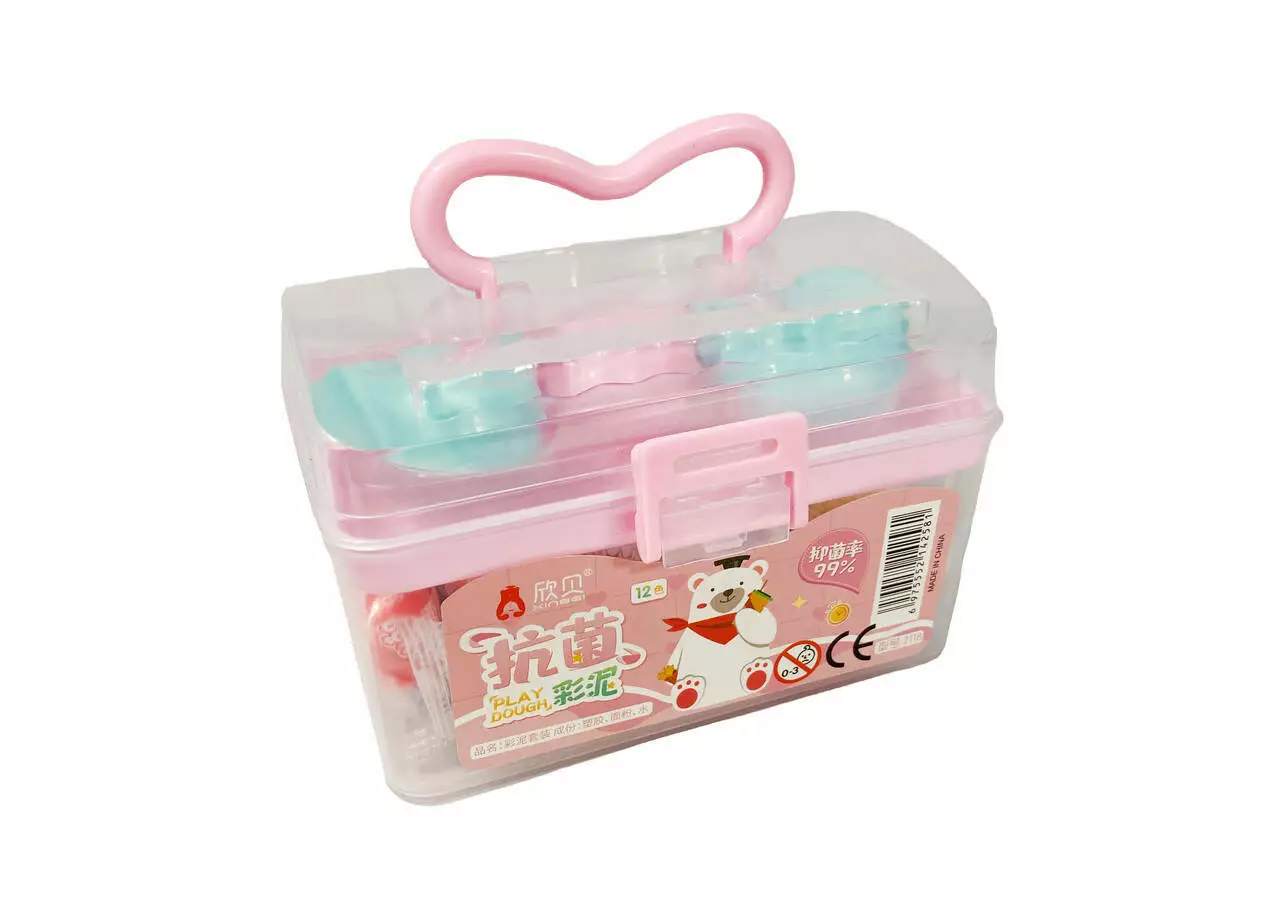 Набор теста пластелин для лепки разноцветная глина для лепки, детский пластилин 12 цветов в контейнере розовый