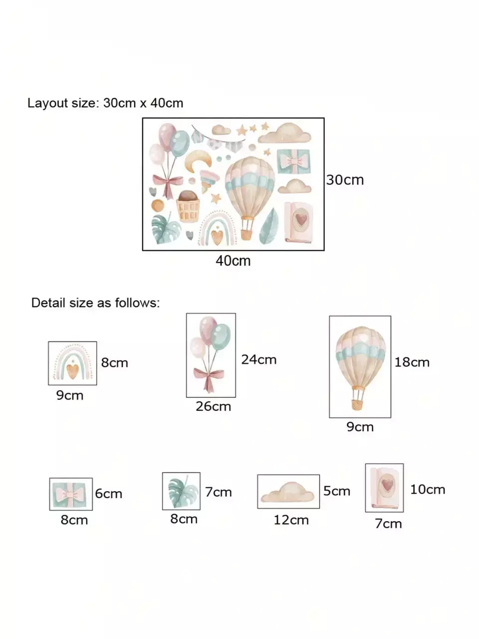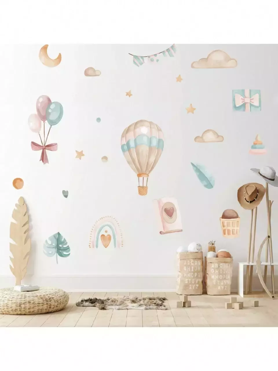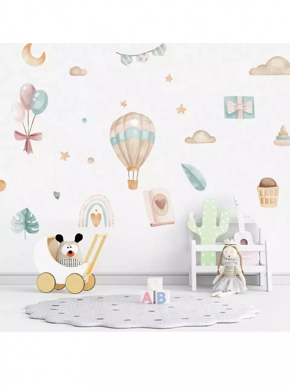 Развивайте воображение вашего ребенка. Декоративная наклейка "Воздушные шары" не только украсит комнату, но и станет стимулом для детской фантазии. Малыш будет мечтать о захватывающих приключениях под парящими шарами и вдохновляться на новые игры. Этот уютный элемент декора станет любимой частью комнаты вашего ребенка.