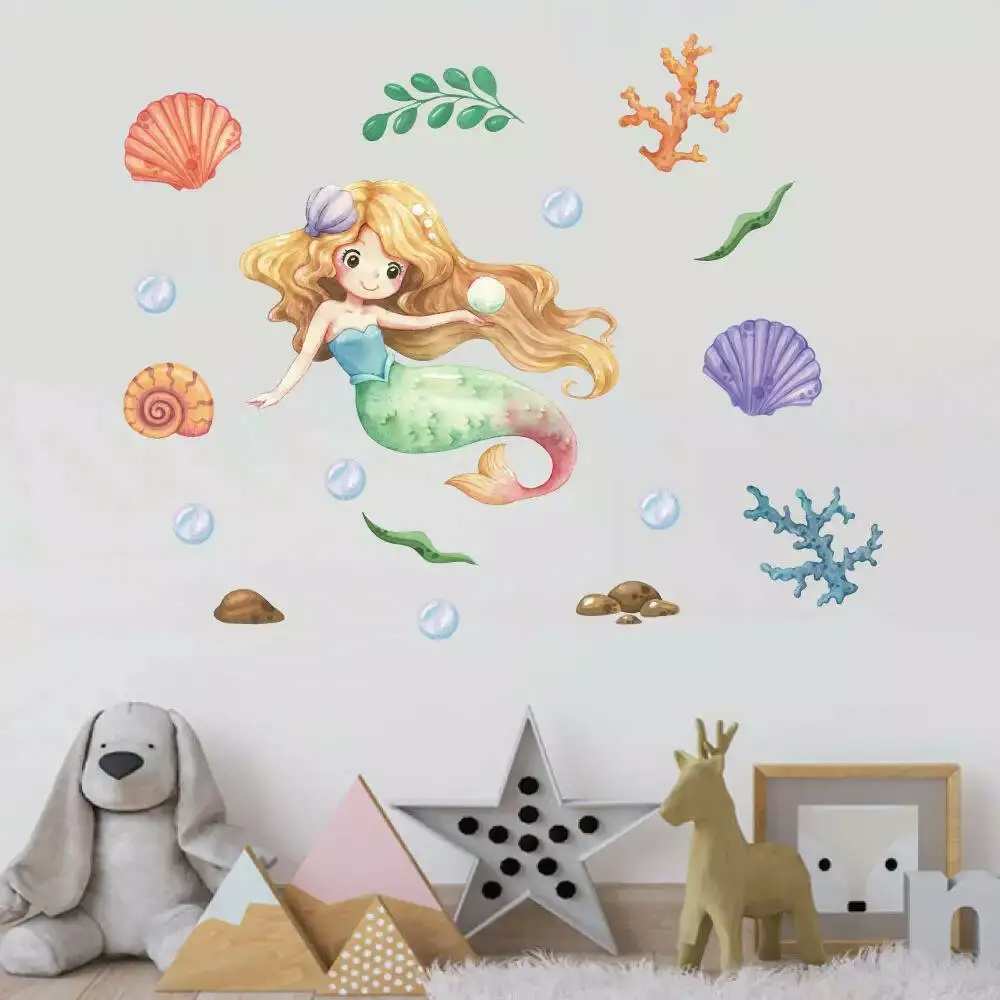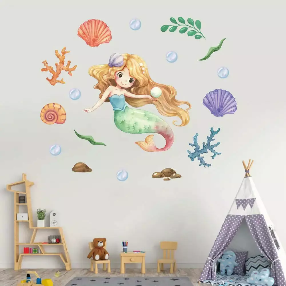 Виниловая наклейка "Ариэль" превратит детскую комнату в волшебный уголок, наполненный атмосферой подводных приключений. Изящная русалка Ариэль, плавающая среди кораллов и ракушек, придаст интерьеру морскую атмосферу и очарование. Эта композиция оживит стены, создавая уютное пространство, где ребенку будет приятно играть, отдыхать и мечтать.
