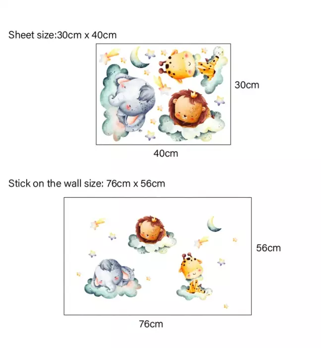 Наклейка виниловая в детскую комнату на стену "Спящие зверята" для девочек и мальчиков 30х40 см