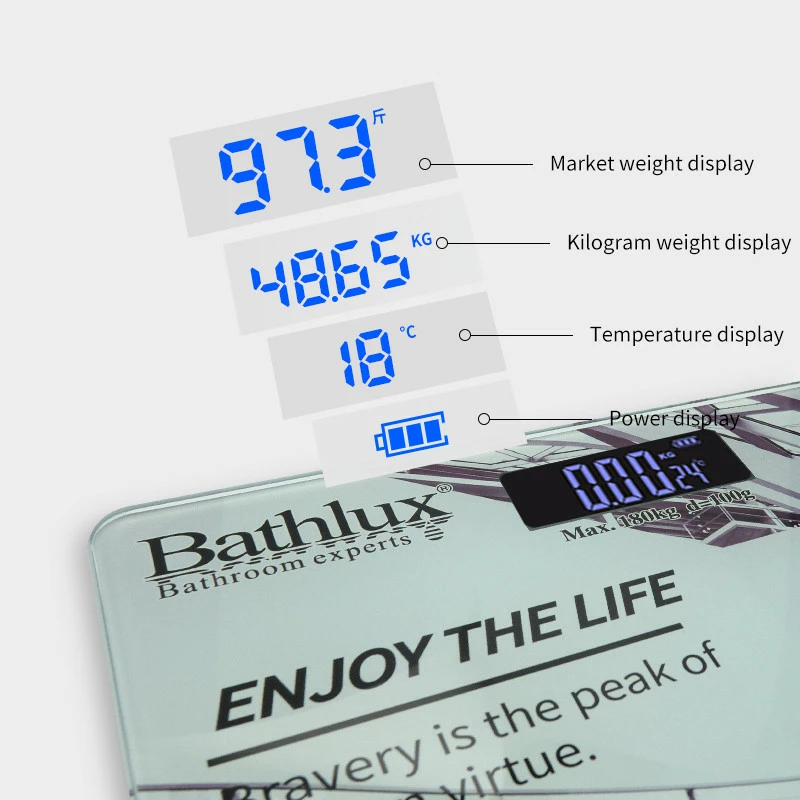 Напольные стеклянные весы для дома Bathlux супероточные, до 180 кг, дизайн Gray building