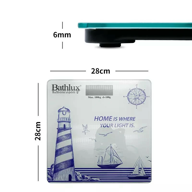 Напольные весы Bathlux выполнены из закаленного стекла, супероточные, до 180 кг, дизайн Navy style
